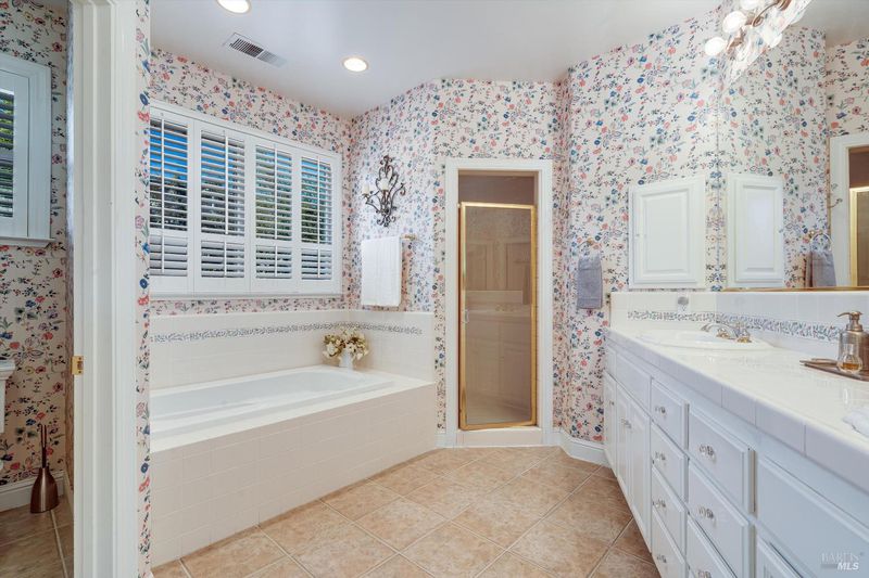 - Jetted Tub, Shower Stall(s), Tile, Tub, Window
