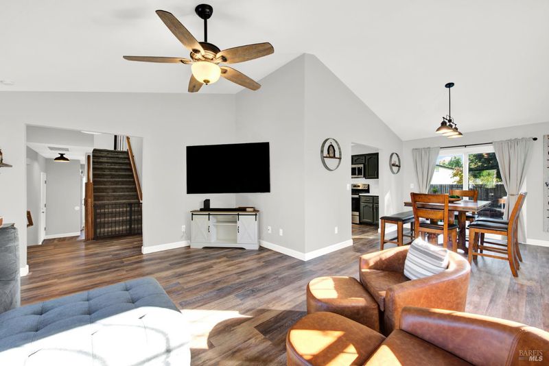 So much to love in this beautifully updated Stonegate home where comfort, efficiency, and style come together effortlessly. Recent improvements include new windows in the living room, kitchen, and primary bedroom, along with owned solar, a whole-house fan, newer HVAC system, and durable LVP flooring on both the main and upper levels. The refreshed kitchen shines with quartz countertops, a new sink and faucet, and a clean, modern aesthetic. New sliding doors off the dining area and family room invite abundant natural light and seamless indoor-outdoor living. Ceiling fans in every room enhance year-round comfort. The generous backyard is ideal for relaxing or entertaining, featuring a large concrete patio, a covered outdoor area, and possible RV parking. All of this is just moments from Stonegate Park, shopping, and convenient freeway accessan exceptional opportunity in one of the area's most desirable neighborhoods.