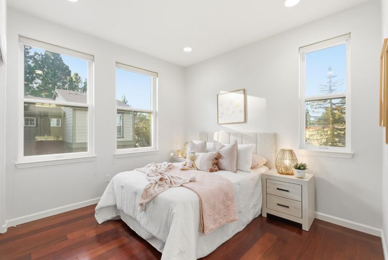 Welcome to Evelyn Glen, located in the heart of Sunnyvale surrounded by soaring Redwoods minutes from Downtown Sunnyvale and both new Apple campuses & CalTrain! Luxurious End Unit Townhome featuring extra windows on all levels that let in loads of natural light and a bedroom on the main level w/ a WIC and access to a full bath. Vibrant hardwood floors, high ceilings w/ recessed lighting, tall double pane windows, elegant tile features & more! Ground Floor features a bonus Family Room & Full Bath w/ floor to ceiling elegant tiles. Open Great Room concept with Living Room, Dining Room and Kitchen combo. Luxurious Kitchen complete w/breakfast bar, stainless steel appliances, large pantry & granite counters. Spacious Owners Suite w/ WIC & en-suite bath w/ dual sinks. Jr Suite also located on upper level w/extra windows, en-suite bath & large closet. Laundry is conveniently located on the upper level. Private patio, great for BBQ's. Lower HOA w/Clubhouse, playground, open field and more! Minutes from newly built Downtown Sunnyvale w/ loads of restaurants, Whole Foods, AMC, Target and more! Short drive to CalTrain, El Camino Real, Central Expressway, Lawrence Expressway, and 101. Easy access to the major companies such as both Apple Campuses, Nvidia, Amazon and Google. Don't miss out!