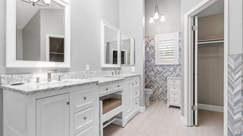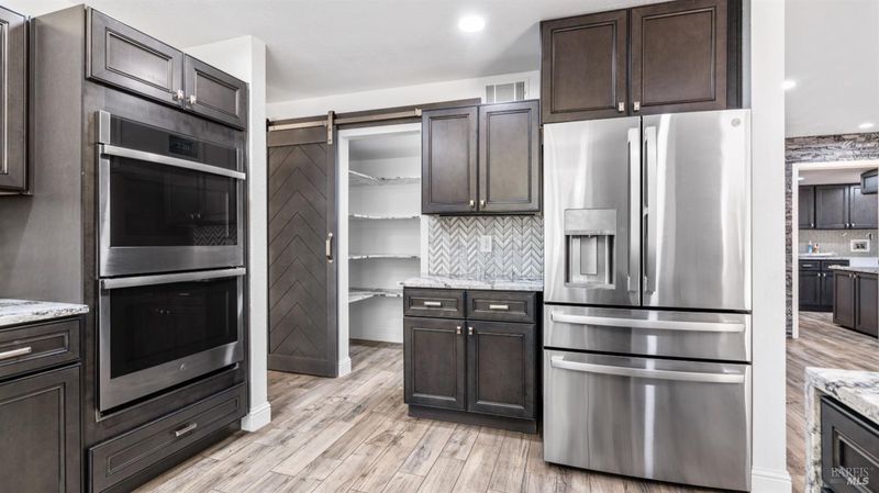 This absolutely stunning home in the Meadowlands has been meticulously updated with the finest materials throughout. The formal living and dining rooms feature soaring cathedral ceilings, creating an elegant atmosphere. The family room offers a cozy fireplace adorned with a beautiful stacked stone wall, perfect for gatherings. The kitchen is a dream for entertainers, equipped with double ovens and an abundance of counter and cabinet space. A charming walk-in pantry, complete with a barn door and granite shelves, enhances functionality. All four bedrooms are conveniently located on the second level, with the primary suite resembling a luxurious spa retreat, featuring a spacious soaking tub, a walk-in shower, and a dual sink vanity. The backyard is ideally designed for entertaining, boasting an in-ground pool with a waterfall and a built-in barbecue area. Additional highlights include solar panels, a large corner lot, extended driveway parking, and a three-car garage. Truly a special place to call home.