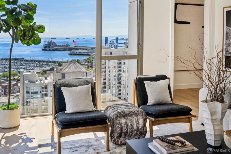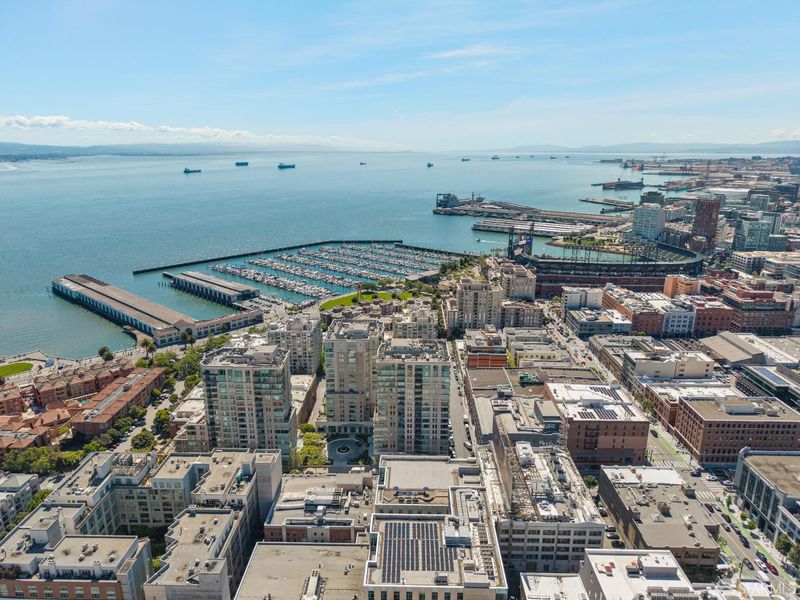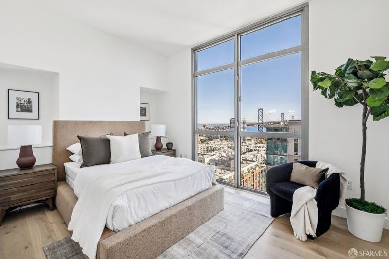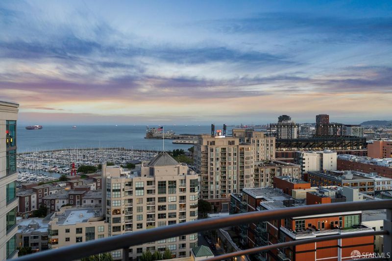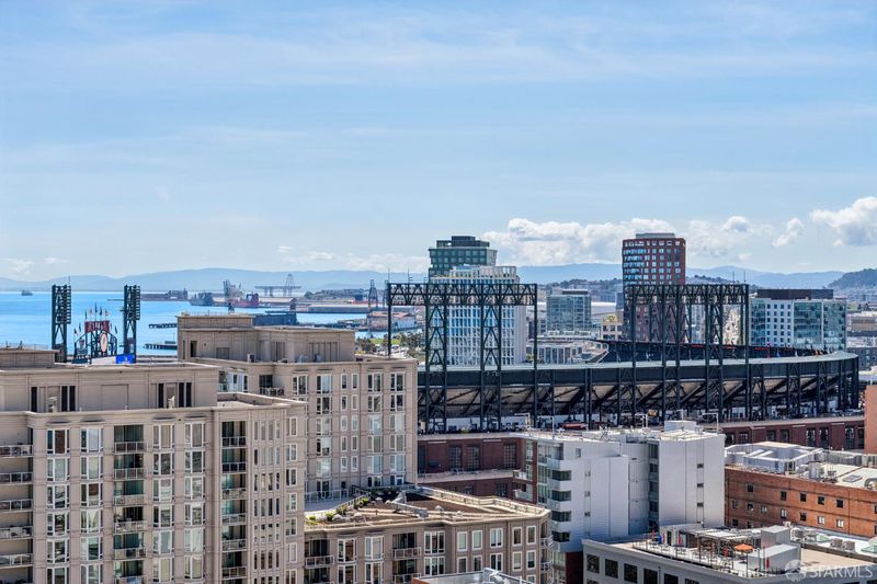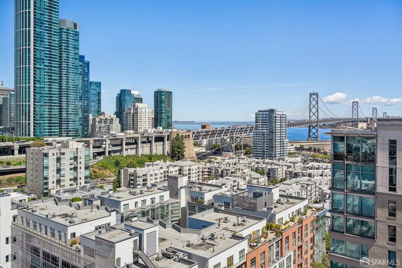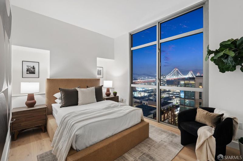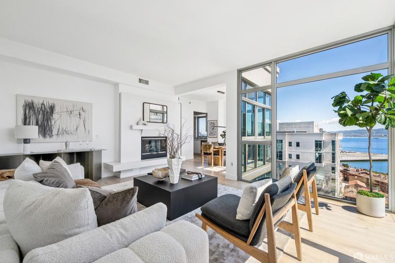 Penthouse corner unit at The Brannan with stunning views, walls of windows, amazing natural light, 11 foot ceilings, air conditioning, and a gorgeous chef's kitchen. This impressive recently updated residence is one of the most special penthouse units at The Brannan. It is luxurious and sexy. Views of the bay, Bay Bridge, East Bay, ballpark, marina, and across the city. This home features 2 bedrooms, 2 bathrooms, spacious living room, dining area, an office or large storage closet, additional storage space, and 2 car parking. Desirable floor plan with bedrooms and bathrooms by each end and great flow from the living room with a handsome fireplace to the dining area to the kitchen. The primary suite has views of the marina and across the bay to the East Bay, nice closet space, an en-suite bathroom with a double sink vanity and tub, and a walk-out view deck. The second bedroom boasts views of the Bay Bridge, bay, and skyline. The gourmet kitchen has a view of the Bay Bridge and is equipped with premium appliances, ample cabinetry, and attractive recently installed counters. The office or large storage closet offers flexibility. Beautiful recently installed floors, in-unit laundry, and 2 car garage parking complete this unit. This is an entertainer's dream home and a wonderful place to lounge or work from. The Brannan is one of the most coveted luxury buildings in South Beach for its location, resort-style amenities, and lifestyle. Amenities include a heated outdoor pool, hot tub, cabana with kitchen, bbq area, fitness center, bike room, lobby attendant, and on-site management. Stylish interiors designed by world renowned French interior designer Christian Liaigre. Near the waterfront, Embarcadero, Ferry Building, Oracle Park, Chase Center, numerous popular restaurants, and transportation. This penthouse has been loved and enjoyed by 1 owner since it was built. This is the home you've been waiting for.