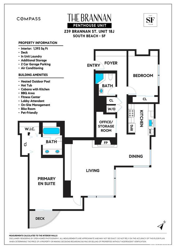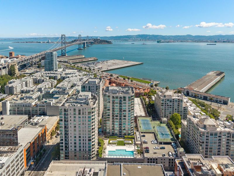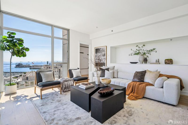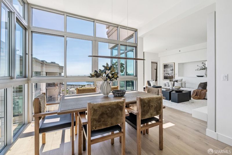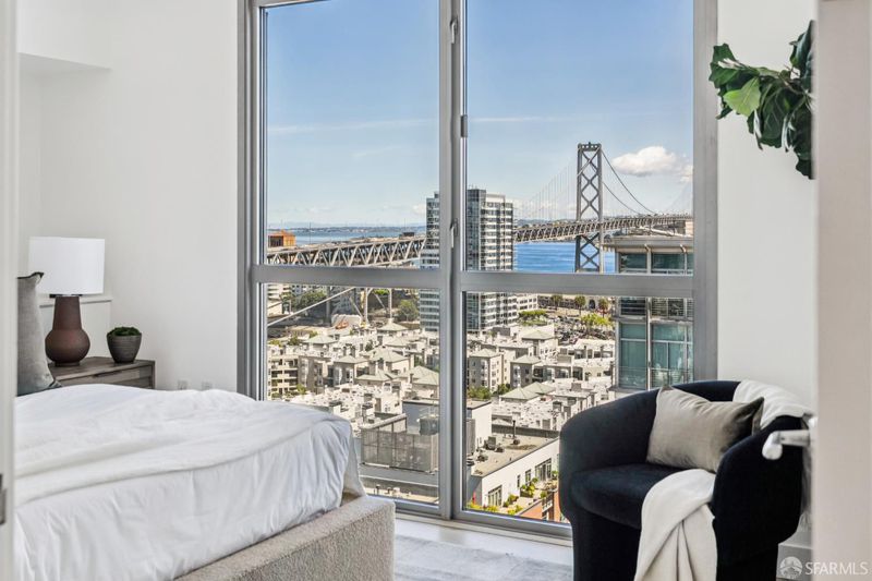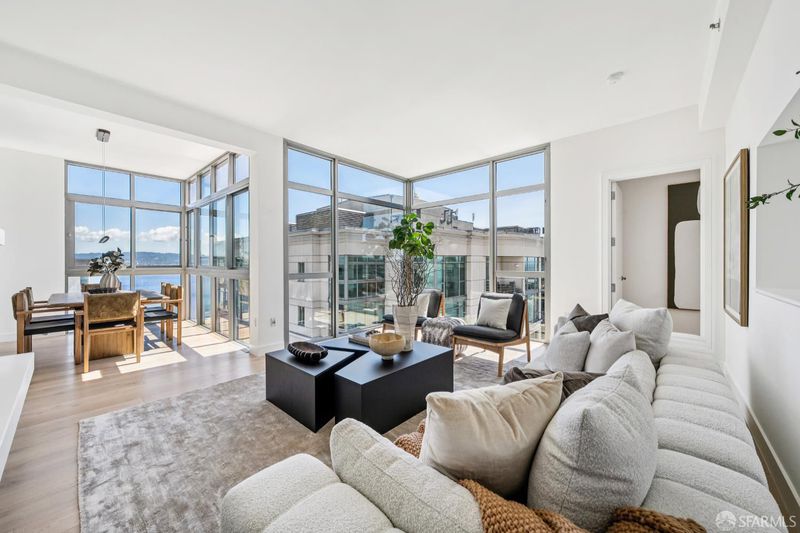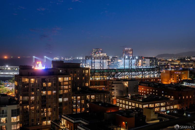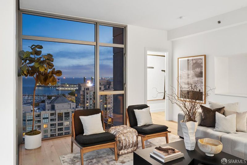 Penthouse corner unit at The Brannan with stunning views, walls of windows, amazing natural light, 11 foot ceilings, air conditioning, and a gorgeous chef's kitchen. This impressive recently updated residence is one of the most special penthouse units at The Brannan. It is luxurious and sexy. Views of the bay, Bay Bridge, East Bay, ballpark, marina, and across the city. This home features 2 bedrooms, 2 bathrooms, spacious living room, dining area, an office or large storage closet, additional storage space, and 2 car parking. Desirable floor plan with bedrooms and bathrooms by each end and great flow from the living room with a handsome fireplace to the dining area to the kitchen. The primary suite has views of the marina and across the bay to the East Bay, nice closet space, an en-suite bathroom with a double sink vanity and tub, and a walk-out view deck. The second bedroom boasts views of the Bay Bridge, bay, and skyline. The gourmet kitchen has a view of the Bay Bridge and is equipped with premium appliances, ample cabinetry, and attractive recently installed counters. The office or large storage closet offers flexibility. Beautiful recently installed floors, in-unit laundry, and 2 car garage parking complete this unit. This is an entertainer's dream home and a wonderful place to lounge or work from. The Brannan is one of the most coveted luxury buildings in South Beach for its location, resort-style amenities, and lifestyle. Amenities include a heated outdoor pool, hot tub, cabana with kitchen, bbq area, fitness center, bike room, lobby attendant, and on-site management. Stylish interiors designed by world renowned French interior designer Christian Liaigre. Near the waterfront, Embarcadero, Ferry Building, Oracle Park, Chase Center, numerous popular restaurants, and transportation. This penthouse has been loved and enjoyed by 1 owner since it was built. This is the home you've been waiting for.