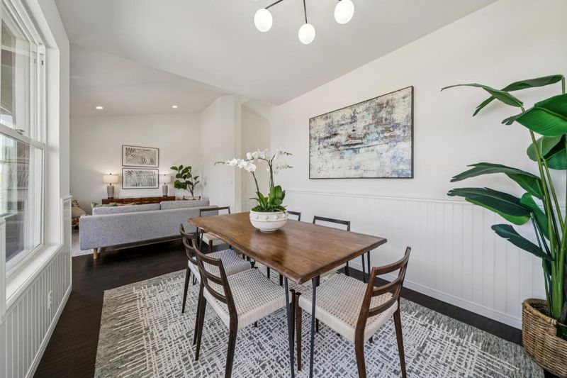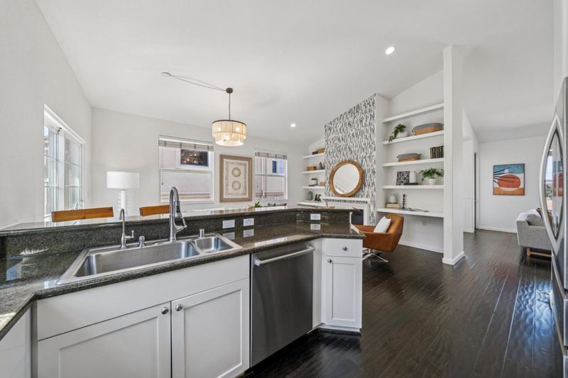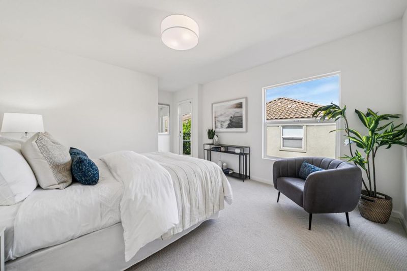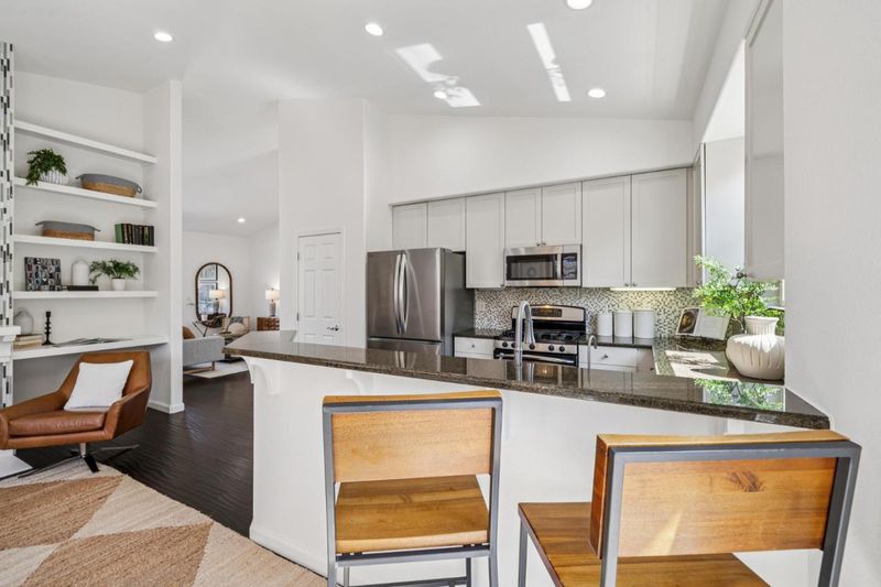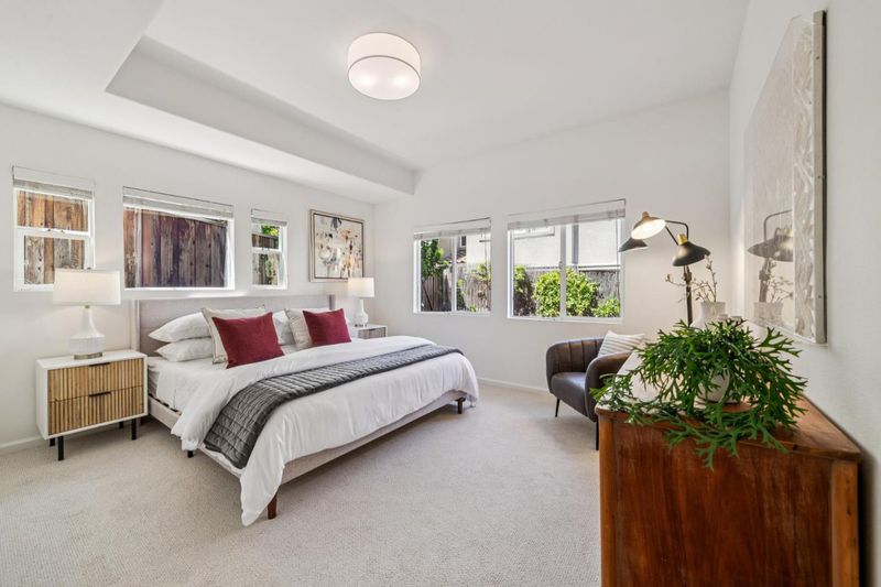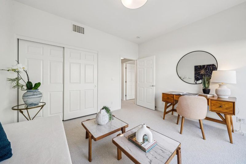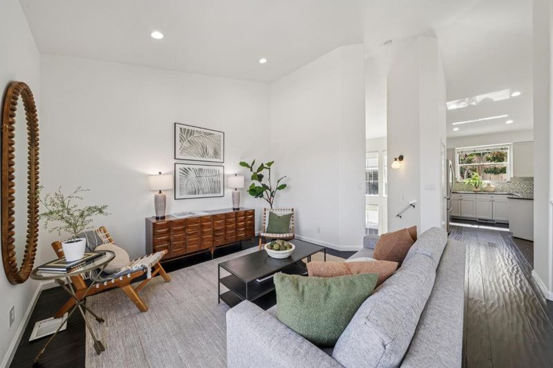 Beautiful end-unit townhome offering 3 bedrooms plus a bonus room, 3.5 bathrooms, and approximately 1,960 square feet of living space. High ceilings, wood floors, new carpet, fresh interior paint, air conditioning, and indoor laundry create a comfortable and move-in ready environment. The open main living area includes a spacious dining and family room with a gas fireplace, built-in floating shelves, and dedicated desk space. The kitchen features stainless steel appliances, pantry storage, and seamless flow to the main living areas. The spacious primary suite offers a retreat-like feel with a walk-in closet, dual-sink vanity, soaking tub, and walk-in shower. A flexible bonus room provides ideal space for a home office, gym, playroom, den, or possible fourth bedroom. Enjoy a fenced backyard with raised garden bed, three elegant curved outdoor terraces, and a two-car garage. Prime location with convenient access to I-280, major commuter routes, Downtown San Jose, Silicon Valley, and beyond.