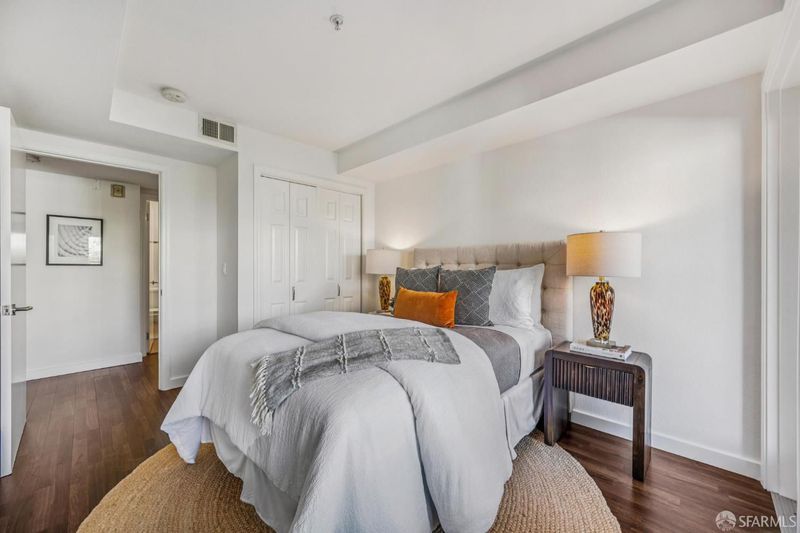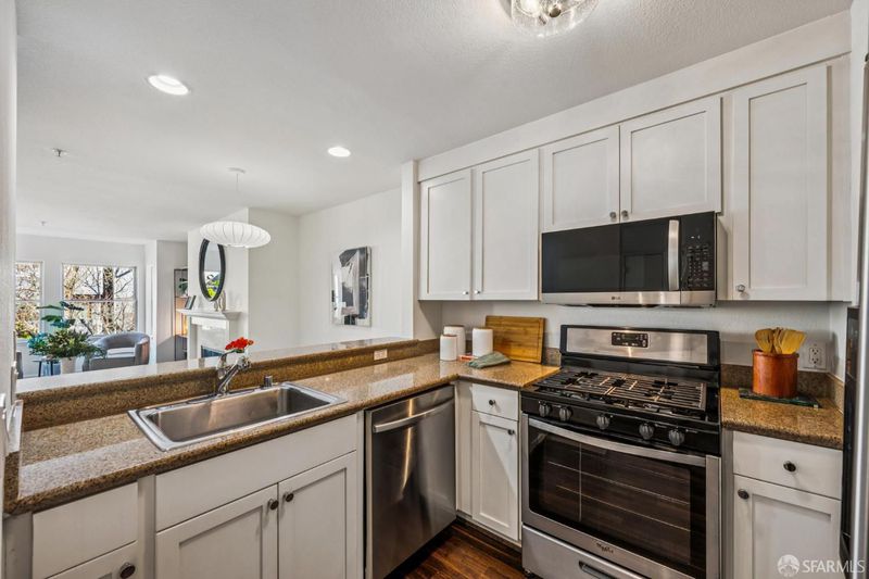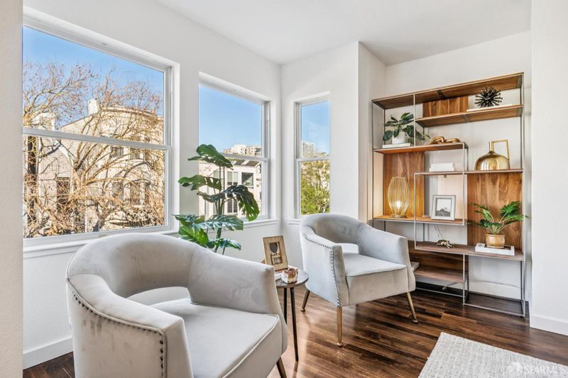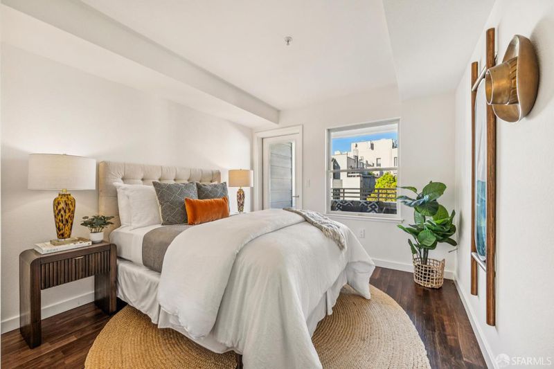 Lower Pacific Heights. Upper Fillmore seldom available 2 bedroom, 2 bathroom condo in 1999 elevator building. Located between Bush and Sutter, just one block from popular and vibrant Fillmore Street cafes, restaurants boutiques and more. Mollie Stone's Market, Alta Plaza Park and Japantown nearby. WalkScore 99. Freshly painted north-facing air-conditioned home with gleaming rich dark wood floors. Open living/dining room with fireplace. Kitchen features include granite counters and breakfast bar, stainless steel appliances and gas range. In-unit laundry and two full tiled bathrooms. Primary bedroom with en-suite bathroom and generously-sized walk-in closet. Quaint covered balcony accessed from the second bedroom. Deeded one-car garage parking and separate exclusive secured storage. New shared EV charging station coming soon. New roof in 2025. Two pets allowed.