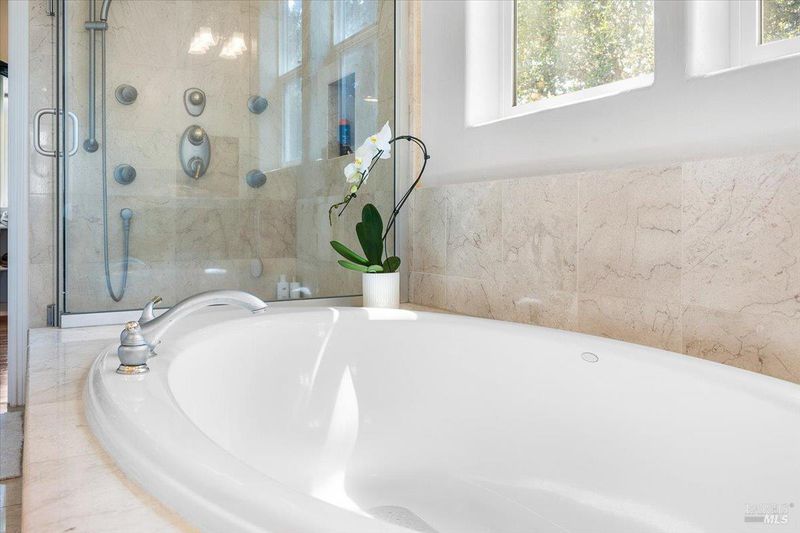 - Closet, Double Sinks, Multiple Shower Heads, Shower Stall(s), Soaking Tub, Tile, Window