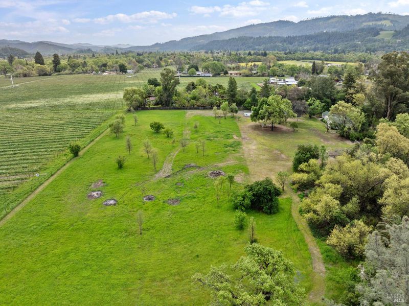 Create your own Napa Valley Compound. 6.37 acres situated on the Valley floor with unbelievable views of the Palisades, Mt. St. Helena and the Western Hills. Originally built back in 1946, the property consists of a main residence, caretaker/guest cottage and two additional unfinished cottages adjacent to the mineral water spa. Remodel the existing main residence or build in the back to fully take advantage of the views.