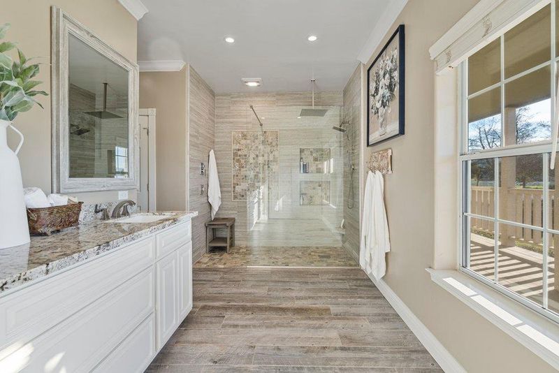 Double Sinks, Granite, Stall Shower, Shower and Tub, Tile, Updated Bath, Full on Ground Floor, Primary - Stall Shower(s)