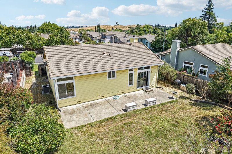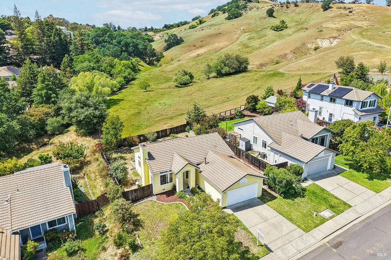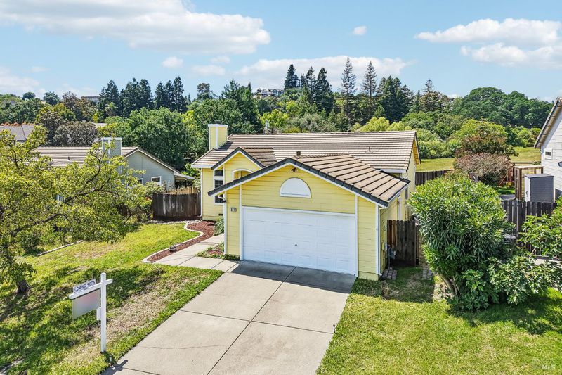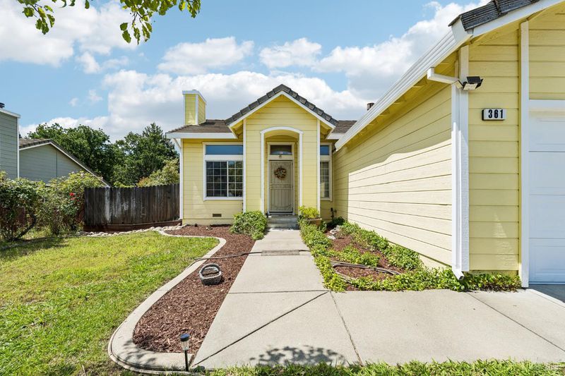 Welcome to 361 Hilltop Court in desirable Vacaville, CA 95688. This is a charming 3-bedroom, 2-bathroom cottage-style home nicely situated on a quiet court. There are no rear neighbors and you will enjoy magnificent views of Old Rocky Hill. Offering 1120sf of thoughtfully designed living space, this home combines warmth, character, and comfort throughout. Step inside to this cozy floor plan featuring vaulted ceilings, abundant natural light, and a cozy wood-burning fireplace. Unique Tuscan-inspired wall treatments and handmade Italian tile flooring add timeless charm and custom character. Outside, enjoy a large private backyard retreat complete with mature citrus trees and Old Rocky: the perfect setting for relaxing, entertaining, or gardening while taking in the peaceful surroundings. Priced at just $499,900, this special property offers privacy, style, and an exceptional location. Don't miss your opportunity to own this one-of-a-kind Vacaville gem!