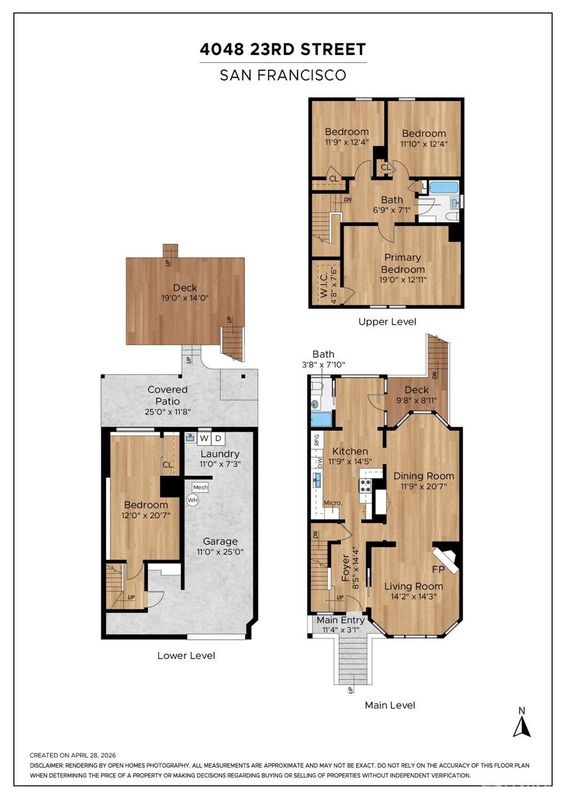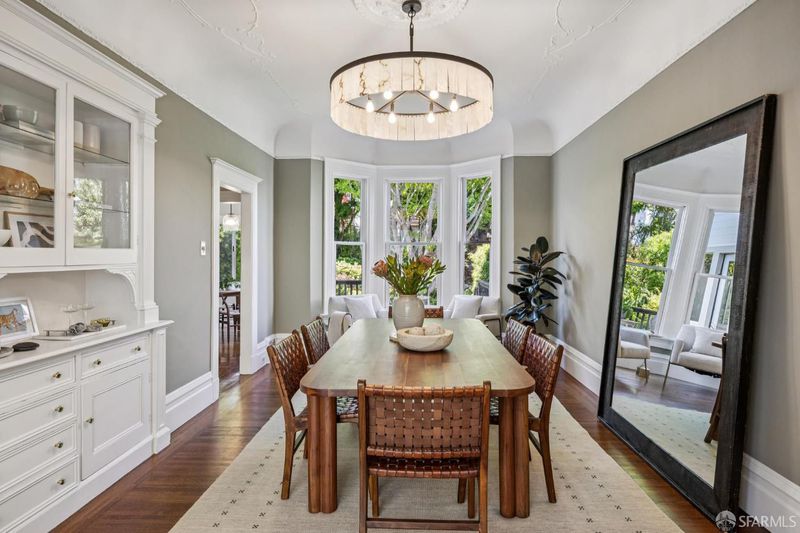 4048 23rd Street is a beautifully maintained John Anderson Victorian home on a tree-lined block in Noe Valley. Its preserved facade sets the tone for a rich collection of period details, including an original staircase, ornate ceiling designs and medallions, bay windows, and finely crafted millwork and built-ins. A formal foyer leads to a sunlit, south-facing living room with verdant outlooks and a wood-burning fireplace. Just beyond, a spacious dining room overlooks the gorgeous garden and connects seamlessly to a functional kitchen with a separate eating area. Off the kitchen, a walkout deck descends to a serene, landscaped garden featuring multiple terraces, mature plantings, and a tranquil stream/water feature. Back inside, a full bathroom completes the main level. Upstairs, the bedroom level offers a generously sized primary suite with a walk-in closet, two additional bedrooms, and a full bath, all connected by a wide hallway. The lower level includes a flexible office or guest bedroom, with potential to expand into a larger suite and/or add a bathroom. Additionally, there is a spacious one-car garage with abundant storage. Located just two and a half blocks from vibrant 24th Street the heart of Noe Valley you're moments from neighborhood favorites, cafes, and everyday conveniences.