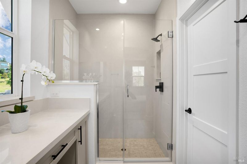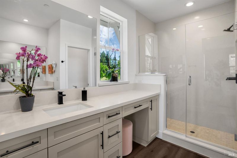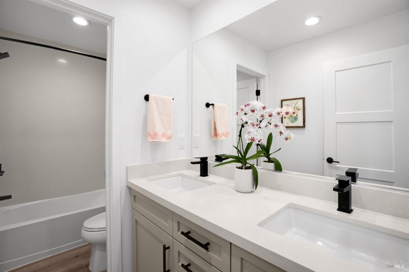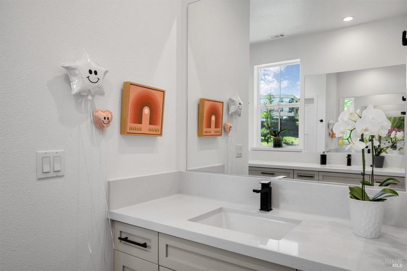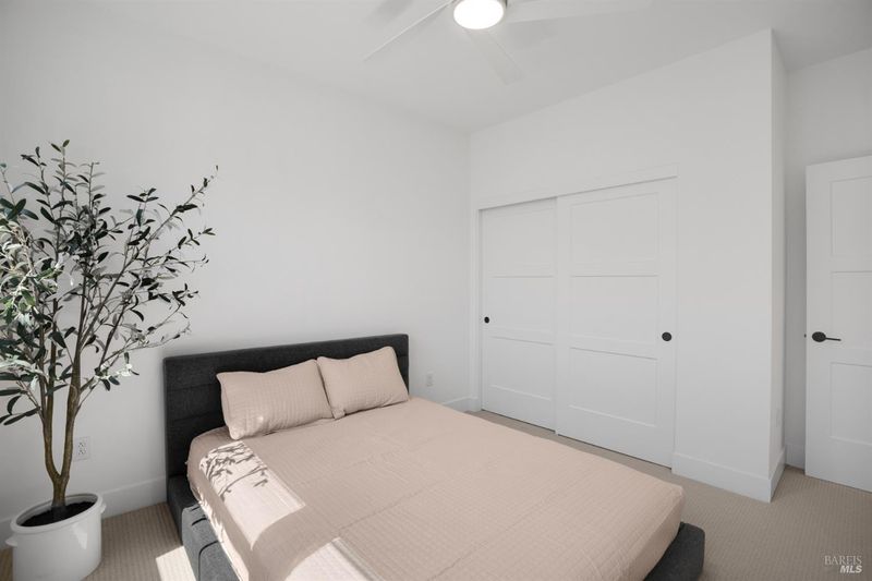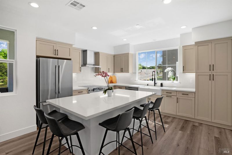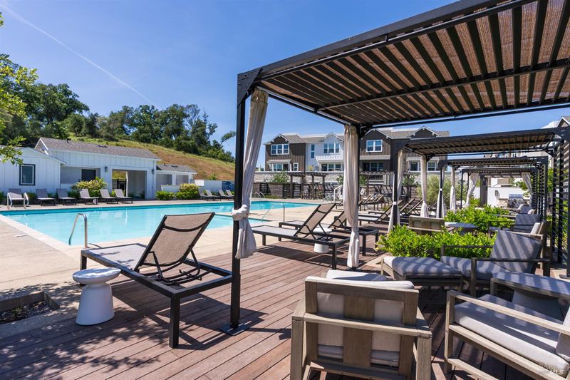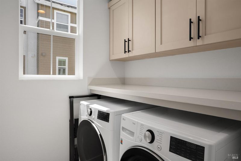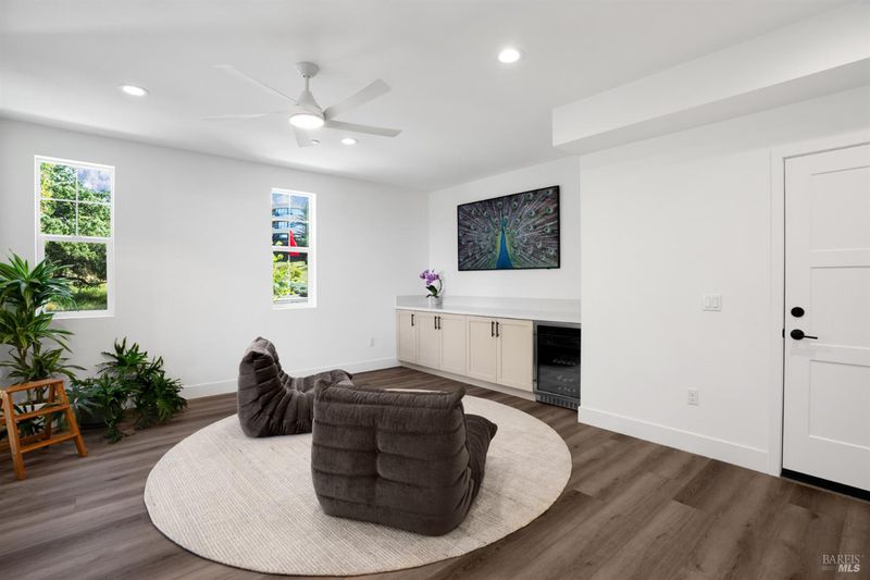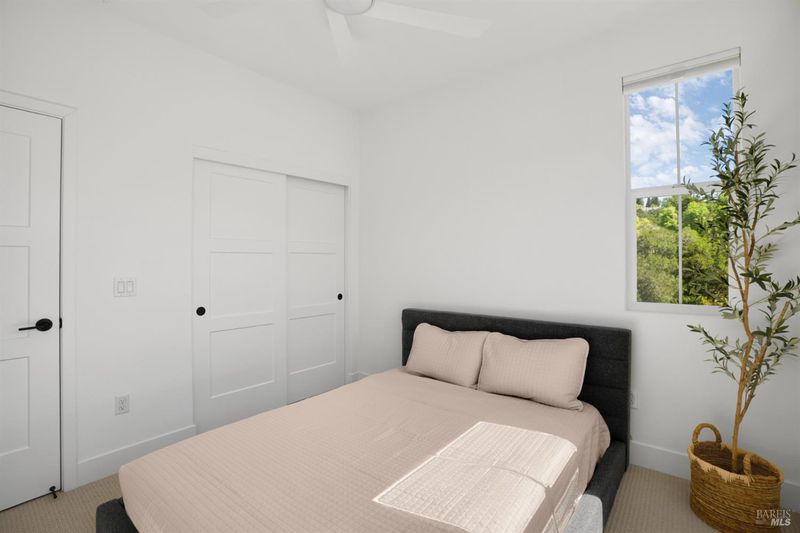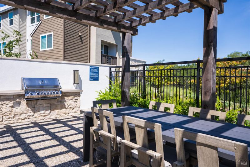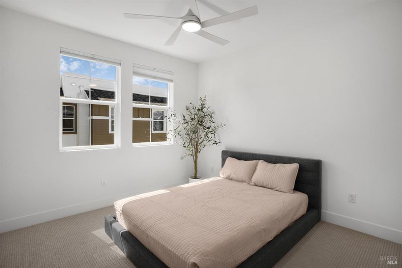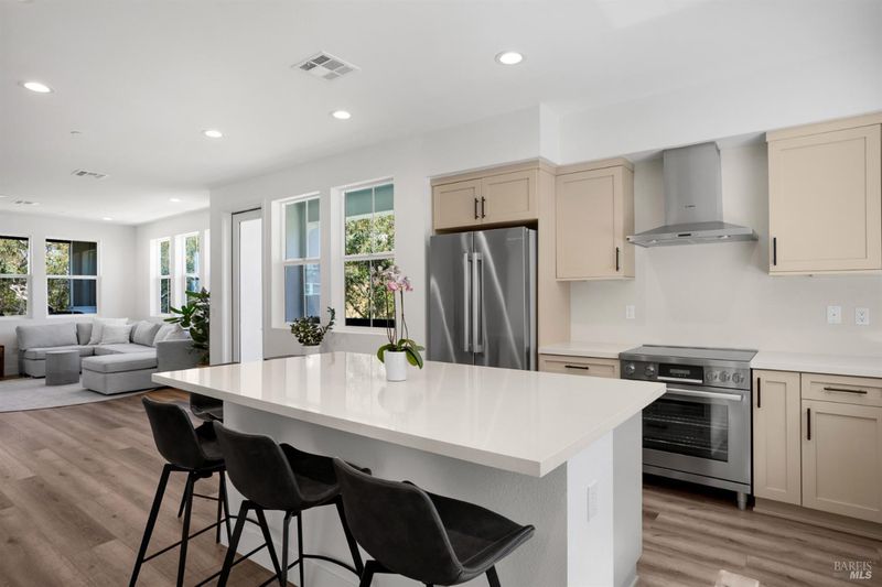 Welcome to this stunning end-unit townhome, where thoughtful upgrades, minimal maintenance, and resort-style living come together in Santa Rosa's desirable Fountaingrove neighborhood. Nestled just off a private pocket park, this 3-bedroom, 2.5-bath home offers 1,912 sq. ft. of well-appointed living space filled with natural light and is one of a handful of homes in the community where the main living area and primary bedroom look out onto mature trees, open space, and scenic views. The first-floor flex room sets the tone with upgraded built-in cabinetry featuring a quartz countertop and wine fridge, making it ideal as a home office, media room, casual entertainment space, or home gym. Open the French doors, and the front patio becomes a natural extension of the living area, creating an effortless indoor-outdoor flow. The open-concept second floor is the heart of the home, where a quartz island anchors a kitchen appointed with a farmhouse sink, soft-close cabinets, and premium Bosch appliances. Step out to relax on one of the two balconies, one which is perfectly positioned to soak in the breathtaking sunsets that outline the mountains in the distance. A conveniently located laundry room with upgraded built-in cabinetry and a half bath round out this thoughtfully designed level. The third floor features a generous primary suite with a walk-in closet, an en suite bath with separate vanities, and a walk-in shower. Tree views and open vistas frame the windows, creating a true private retreat. Two additional bedrooms and a full bathroom provide comfortable and flexible space for your needs. Step outside for a short walk to the community's resort-caliber pool and spa, multiple parks, and a community garden. Owned solar helps keep energy costs in check year-round. Ideally situated for everyday convenience, this home is minutes from Windsor, Healdsburg, and downtown Santa Rosa, with Kaiser Permanente within half a mile and Sutter Health under two miles away.