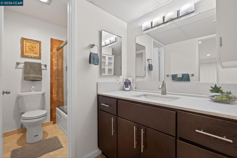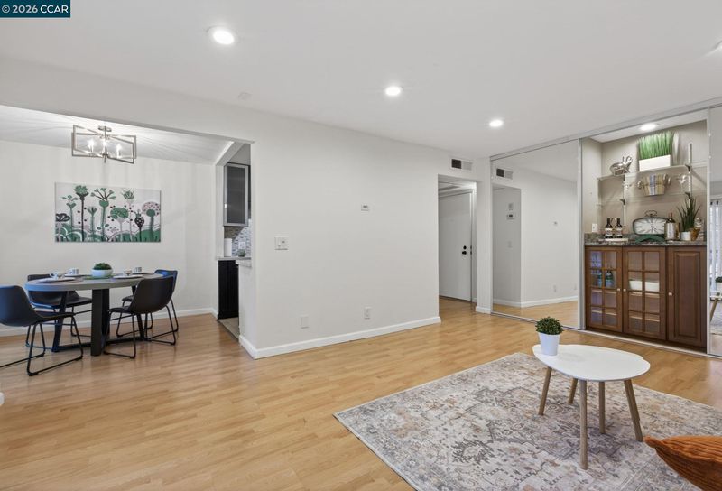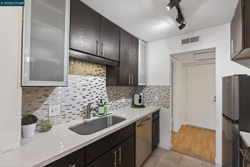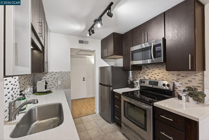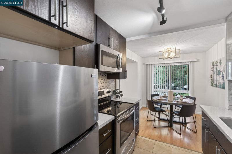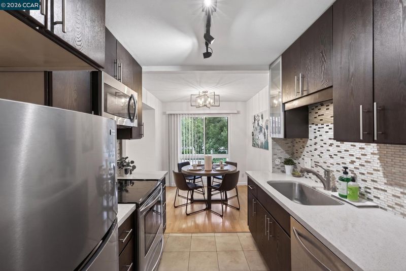 This well-maintained 1-bedroom, 1-bath condo with 748 SqFt floor plan offers a comfortable and convenient lifestyle with thoughtful updates throughout. The kitchen presents a clean, modern aesthetic with a smart, functional layout. Rich espresso cabinetry contrasts beautifully with light quartz countertops, SS appliances and a sleek mosaic tile backsplash, creating a polished, contemporary feel. The spacious primary suite easily fits a king-sized bed and features a walk-in closet and updated bath. What makes this place special is the resort-style vibe. The grounds are full of landscaped paths, streams, and ponds that make it feel like a getaway. You’ll have access to three pools (including a heated one), tennis courts, a sauna, and a clubhouse. Plus, you're just minutes from downtown Walnut Creek, BART, and local trails. It’s that rare mix of a quiet, relaxed setting that's still close to everything you actually need.