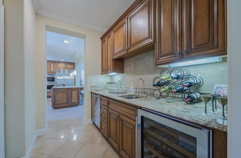 - Cooktop - Gas, Countertop - Granite, Dishwasher, Exhaust Fan, Freezer, Garbage Disposal, Island with Sink, Microwave, Oven - Double, Oven Range - Built-In, Gas, Refrigerator, Trash Compactor, Wine Refrigerator