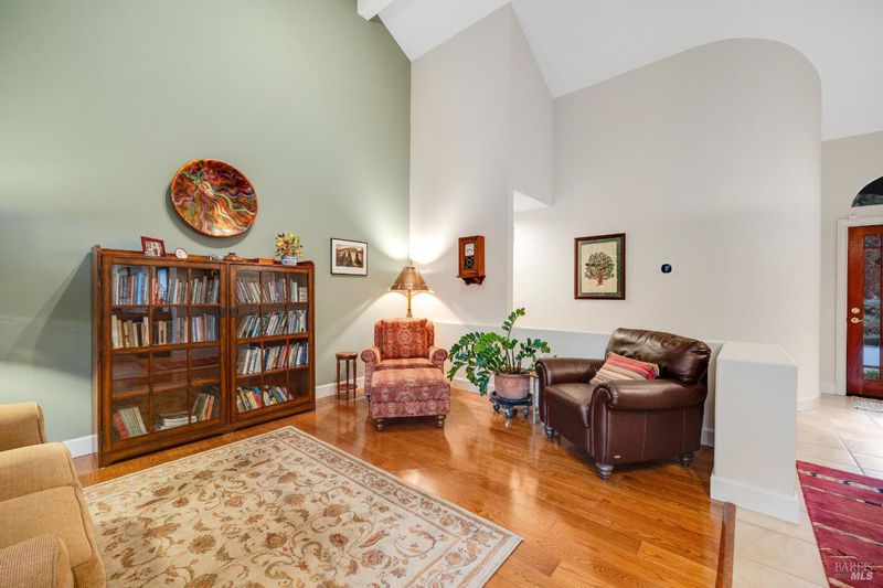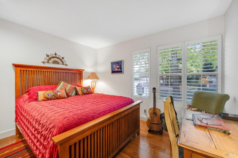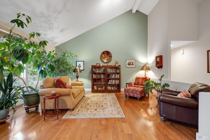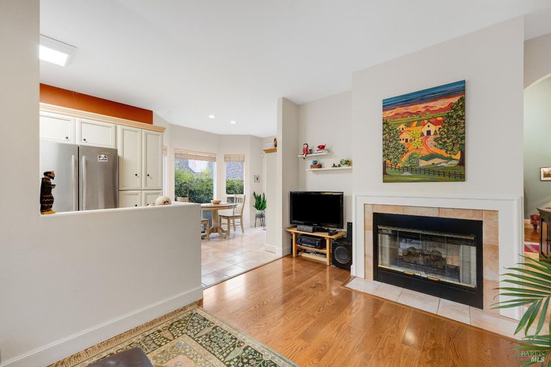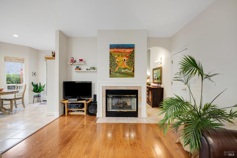 Welcoming single-level custom home built by Valena Construction in 1996, offering 3 bedrooms, 2 full bathrooms, and approximately 1,744 sq. ft. of thoughtfully designed living space on a landscaped 6,001 sq. ft. lot. Ideally located in the desirable Brush Creek/Rincon Valley area near parks, shopping, and excellent schools. The light-filled open floor plan is perfect for everyday living and entertaining, featuring cathedral ceilings and a two-sided fireplace connecting the living, dining, and den areas with warmth and style. The inviting kitchen offers freshly painted cabinetry, quality Jenn-Air stainless steel appliances including refrigerator, tile flooring, and a bright breakfast nook overlooking the backyard. Rich engineered wood flooring flows throughout, adding timeless appeal. The primary suite includes raised ceilings, built-in shelving, and sliding doors leading to a private patio with white shutters. The ensuite bath features both a soaking tub and separate shower. Modern comfort and efficiency include a heat pump providing central heating & A/C plus owned solar panels for energy savings. The backyard offers a patio, lawn, raised garden beds, and coordinating shed. Pride of ownership shines throughout this move-in ready home combining comfort, craftsmanship & charm.