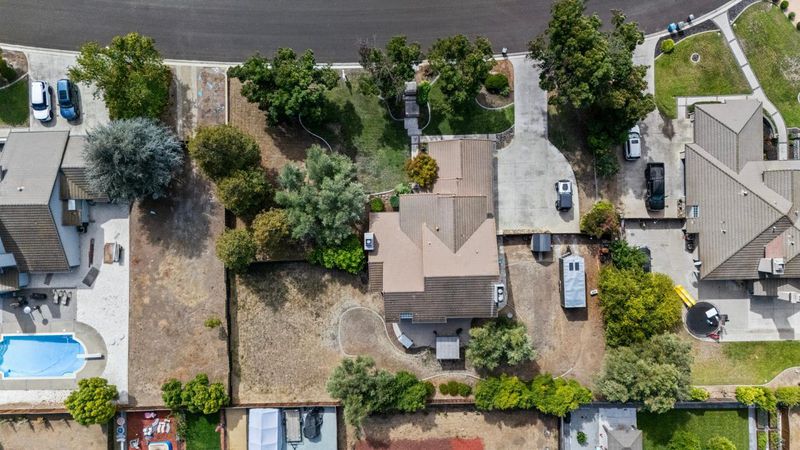 Nestled in the gated community of Cielo Vista in Hollister, this spacious home sits on an expansive 24,302 sq ft lot, half acre lot, with room for your RV, trailer, or boat. The thoughtfully designed floor plan offers two separate living areas, a formal dining space, an eat-in kitchen, and a 3 car garage. High ceilings greet you in the entry and main living areas. Beautiful staircase and coffered ceiling over dining room. The U-shaped kitchen features newer granite countertops and a garden window overlooking the generous half acre lot. A ground-floor bedroom and full bath provide ideal flexibility for guests, multi-generational living, or a home office. Downstairs also has a wet bar and laundry room with sink. Upstairs, the owners suite includes 2 walk in closets, a soaking tub, and a separate shower. Two additional bedrooms, a full bathroom, and a den with a covered patio and laundry chute complete the upper level. Three fireplaces are located in the owners suite and both living rooms, while central air conditioning ensures year-round comfort. The 3 car garage is finished with epoxy flooring and some built in shelving. Located across from the new Gavilan College campus and Ridgemark Golf Club. Also offers ADU potential based on lot size and orientation.