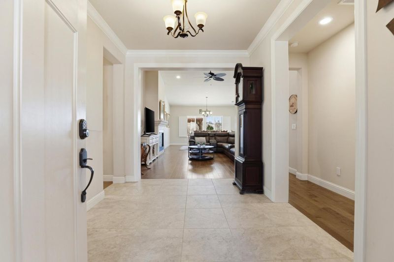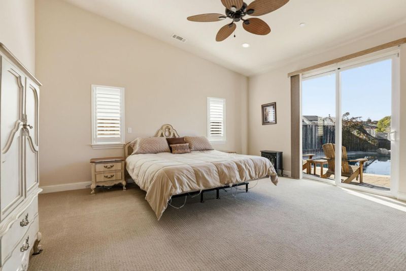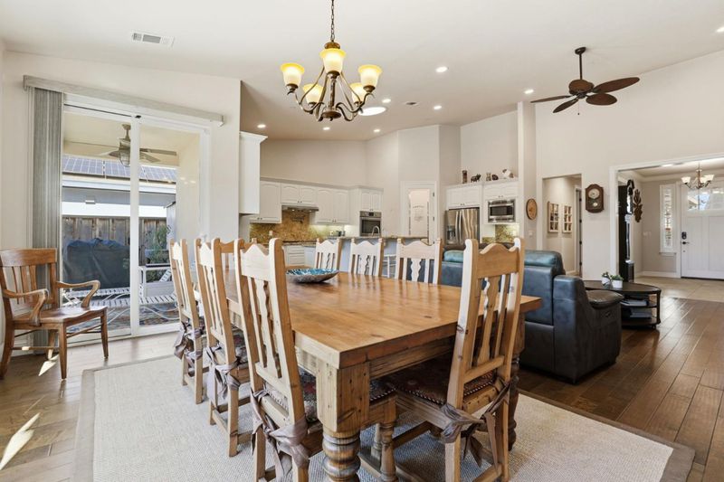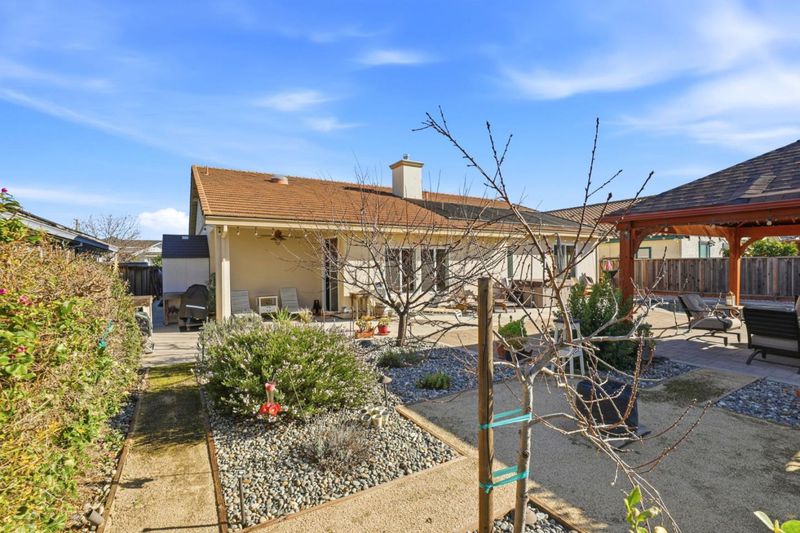 Welcome to a rare blend of luxury and outdoor living in this beautifully upgraded single-story 4 Bedroom 3 bath home on a cul-de-sac in a gated golf course community, offering refined, resort-style living. This elegant home features a gourmet kitchen with granite countertops and Bosch stainless steel appliances designed for both everyday living and entertaining. This well curated floor plan showcases hardwood and tile floors along with heated floors in all the bathrooms. The Spa-inspired primary bathroom includes a jetted tub, waterfall shower, and walk in closet for a luxurious, retreat-like experience. Plantation shutters and owned solar enhance comfort, style, and efficiency, while a spacious over sized 3-car garage provides ample space for vehicles, storage, and hobbies. Step outside to a private backyard sanctuary designed for relaxation and entertaining, featuring a sparkling saltwater pool, freestanding hot tub, bocce ball court, 18 x 14 pavilion gazebo, and a garden framed by mature fruit and citrus trees that provide privacy and tranquility. Enjoy this thoughtfully designed luxury home where every detail invites you to relax and entertain in style.