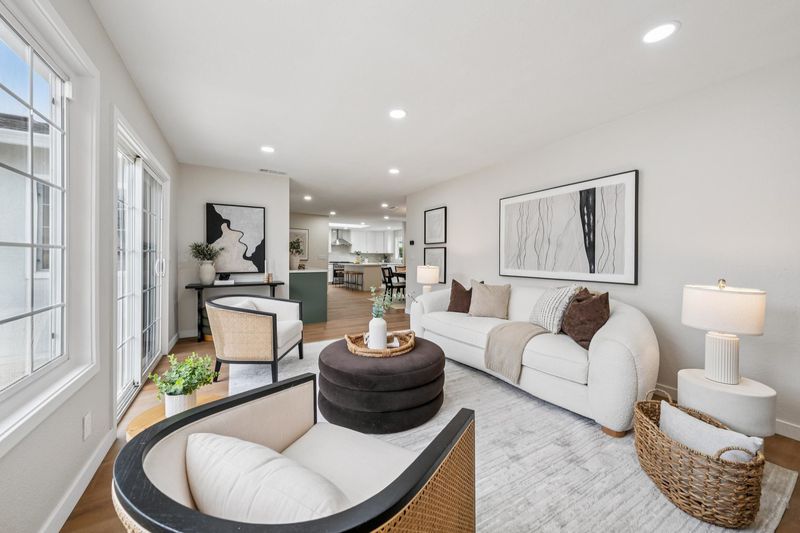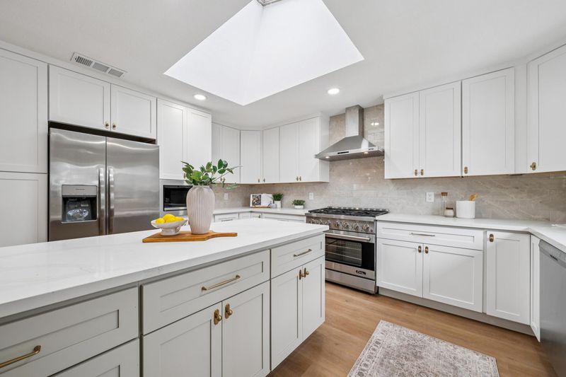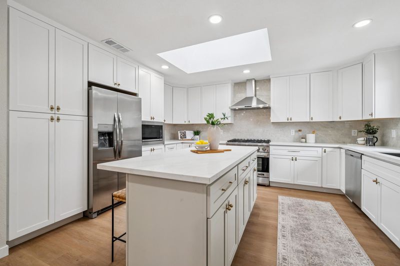 Welcome to this beautifully reimagined residence where natural warmth and modern elegance meet. From the moment you step inside, the home feels calm, inviting, and thoughtfully curated, with a seamless flow designed for everyday living and effortless entertaining. To the right, a stunning chef’s kitchen serves as the heart of the home, featuring a large island, all-new appliances, a 36-inch range, built-in microwave, recessed lighting, and a skylight that fills the space with natural light. The kitchen opens gracefully to a formal dining area and an elegant bar space, perfect for gatherings while maintaining a relaxed, organic feel. New flooring runs throughout the home, complemented by fresh interior and exterior paint in a soft, natural palette. The bathrooms have been fully renovated with timeless finishes, additional highlights include a new garage door, paid-off solar, A/C and a generous lot.