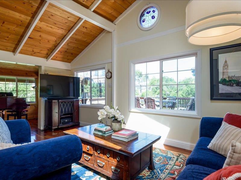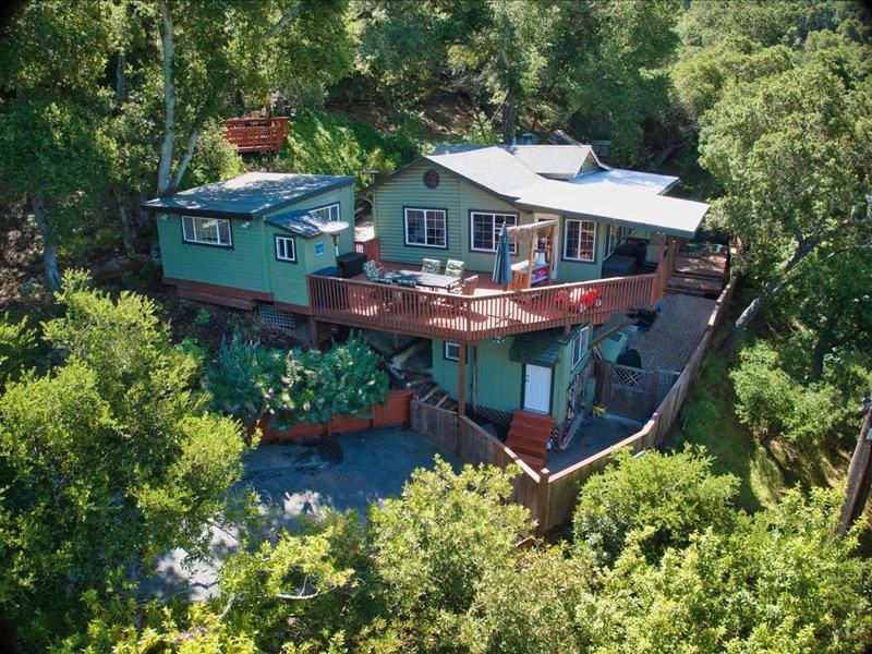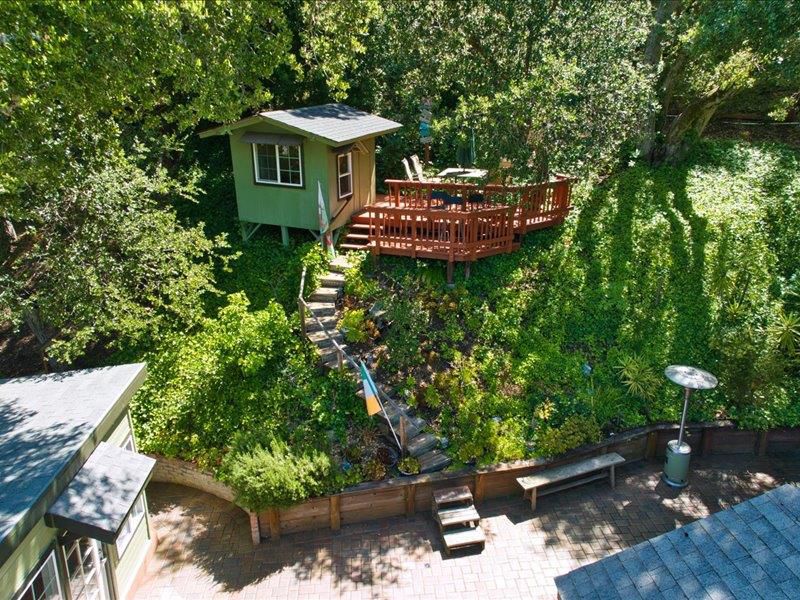 A Sprawling Creative Compound & Historic Shangri-La in Emerald Hills - Rarely does a property offer the intimacy of a soulful retreat and the scale of a private park. Set on a breathtaking 28,000+ sq. ft. lot (3 parcels), 271 Sylvan Way is a 1928 summer retreat lovingly transformed into a one-of-a-kind sanctuary. The Warmth of this home meets history with panoramic 180-degree views of Edgewood Park, engineered hardwood floors, skylights, wine fridge, gourmet gas range, AC, Nest, and a master bath with a classic clawfoot tub. The original rock fireplace, now featuring a gas insert, remains the heart of the home, inviting many cosy family gatherings or just sitting by the peaceful fireplace and relaxing. The Grounds extend 270 feet of frontage just steps from Edgewood Park. This "nature preserve" backyard features massive decks, a hot tub, a fire pit, a greenhouse, and a unique outdoor stage that has hosted many touring artists. You can work from Home with 2 detached, light-filled studios that offer the ultimate quiet and greenery for an executive office or art atelier. This home is truly a "hidden gem" minutes from tech hubs, yet worlds away. A legacy opportunity to own a piece of history with infinite potential.