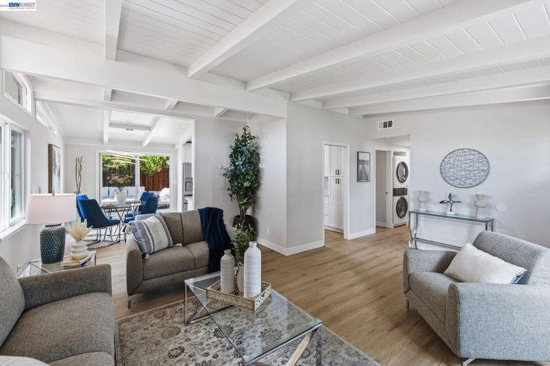 Pride of Ownership shows in this beautiful, mid-century modern home! An efficient floorplan, beamed ceilings, and light-filled rooms create a roomy and airy feeling throughout. The backyard feels exceptionally private due to the insulated and powered office shed, taller fencing, and mature, fruit-bearing pomegranate and Meyer lemon trees! There is just enough lawn for pets, without being overwhelming. The garage is spacious and offers additional options. Thoughtful, beautiful, and functional features include: a new insulated roof and gutters, new central heat and cooling via the energy-efficient heat pump (no wall heaters!), newer double pane windows, new doors, new SPC Vinyl flooring throughout, fresh interior and exterior paint, new quartz countertops, and tall cabinets in the kitchen. All appliances are new and included; gas stove present, but 220v outlet also present. Both bathrooms have been updated. The location has minimal traffic compared to other streets in the area due to the "L shaped" street. Located in the South Sundale neighborhood which has easy access to HWY 880 OR 680 via Automall/Durham, Stevenson, or Washington Blvd. BART, Whole Foods, and Costco, and Lake Elizabeth are only a few city blocks away. Make this GEM YOUR next HOME!