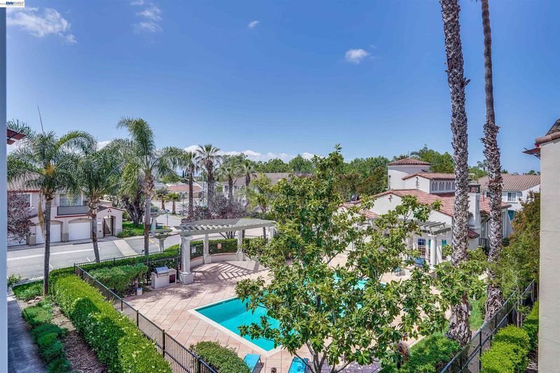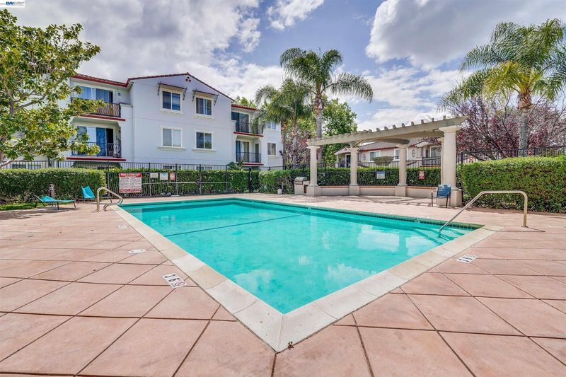 Welcome to the prestigious Monta Vista community in Union City! This stunning top-level residence offers an open-concept floor plan elevated by soaring 9-foot ceilings and abundant natural light. Every detail has been refreshed for a modern feel, featuring brand-new interior paint and premium, soundproof insulated SPC flooring throughout. The thoughtful layout includes a dedicated desk nook—perfect for a home office—and the convenience of in-unit laundry. Step out onto your oversized private balcony to enjoy serene pool views, or retreat to your detached enclosed garage for secure parking and extra storage. Located just steps from BART for an effortless commute, and within walking distance to Quarry Lakes Regional Park, Safeway, Marina Foods, and local favorites. Enjoy resort-style living with access to two sparkling pools, a fitness center, clubhouse, playground, and BBQ area. This is the one you’ve been waiting for! Property is virtually staged.