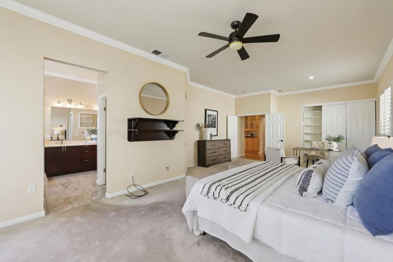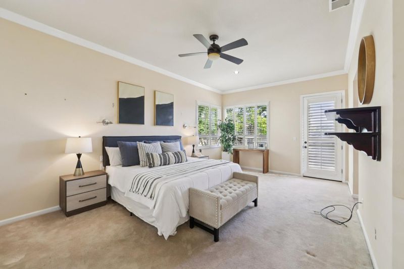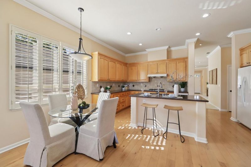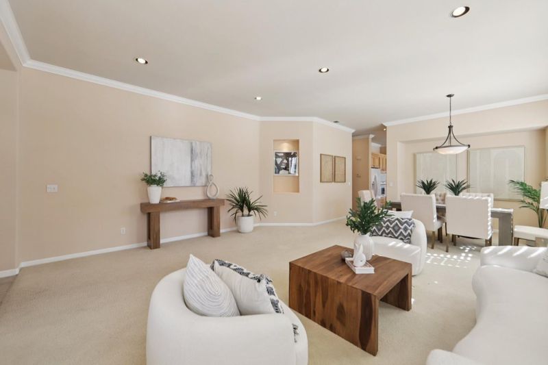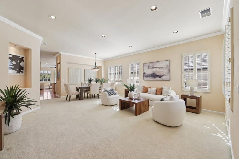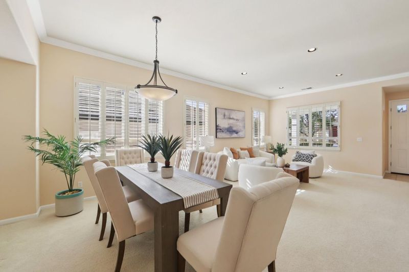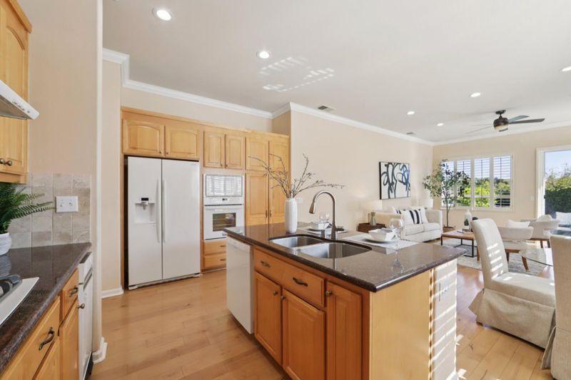 Welcome to resort-style living in the highly sought-after 55+ gated community of The Villages Golf & Country Club. This rare single-story single-family home offers an open-concept floor plan designed for comfortable everyday living & entertaining. Soaring ceilings & expansive windows create a bright, airy ambiance filled w/ natural light. The gourmet kitchen features maple cabinets, large center island & granite counters. Open concept that flows seamlessly into the family room w/ direct access to a private patio - ideal for indoor-outdoor living. The home also includes formal living & dining areas, a spacious primary suite w/ sitting area & patio access & a tastefully remodeled primary bathroom w/ dual vanities. Additional upgrades include plantation shutters, recessed lighting, crown molding, & fresh interior paint. The private backyard patio offers a peaceful setting w/ hillside & creek views, perfect for relaxing or entertaining. Residents enjoy access to The Villages extensive amenities, including a championship golf course, tennis, pickleball & bocce courts, multiple swimming pools & spas, fitness center, hiking trails, clubhouse w/ dining & a wide variety of clubs & activities. A rare opportunity to own in one of Silicon Valleys premier active adult communities.