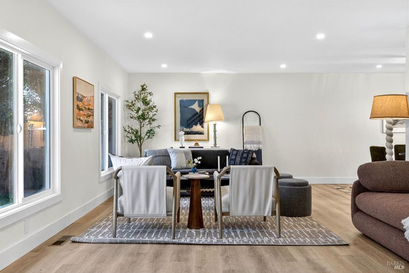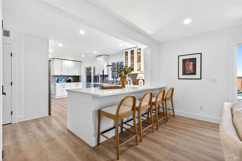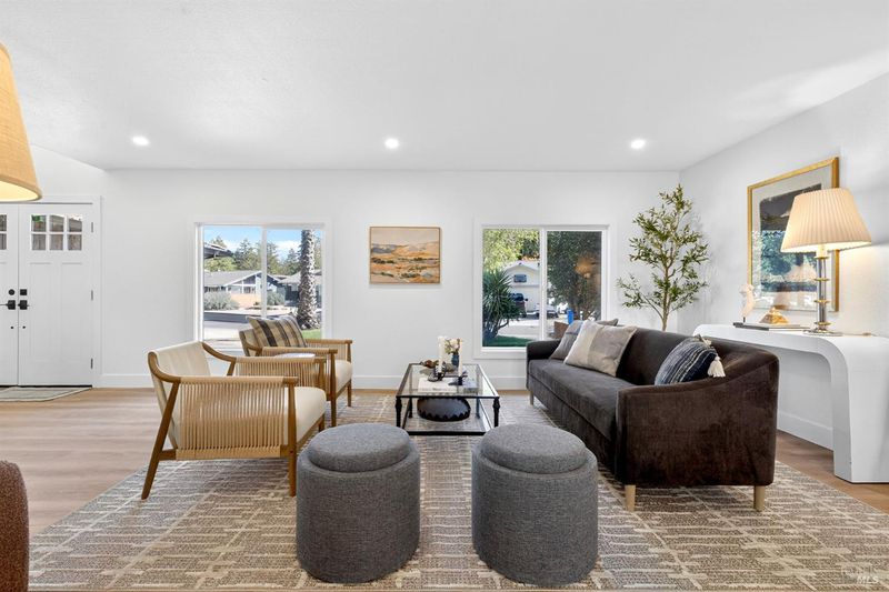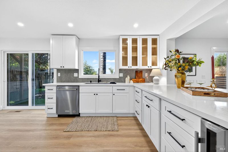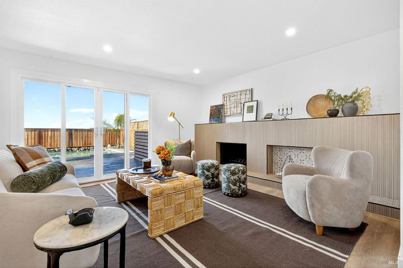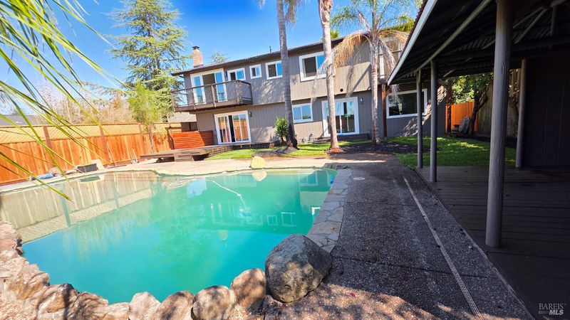 Tucked away at the end of a quiet street in Rohnert Park's desirable H Section, this beautifully remodeled 5-bedroom, 3-bath home offers nearly 2,700 square feet of bright and welcoming living space. Fully updated inside and out, including the home showcases a clean and timeless design throughout. The inviting layout includes spacious living areas and a tastefully updated kitchen, while a convenient downstairs bedroom and full bath provide comfort and flexibility for guests or extended family. Upstairs, the newly added laundry room adds ease to daily living, and the large primary suite offers a cozy retreat complete with a walk-in closet and private balcony overlooking an open field. Step outside to enjoy the serene backyard featuring a sparkling PebbleTec pool and a covered pergola perfect for relaxing, entertaining, or simply enjoying the peaceful surroundings. This quaint and inviting home blends warmth, charm, and comfort in one of Rohnert Park's most sought-after neighborhoods.