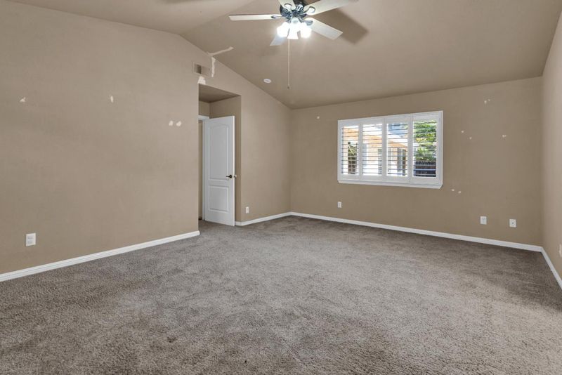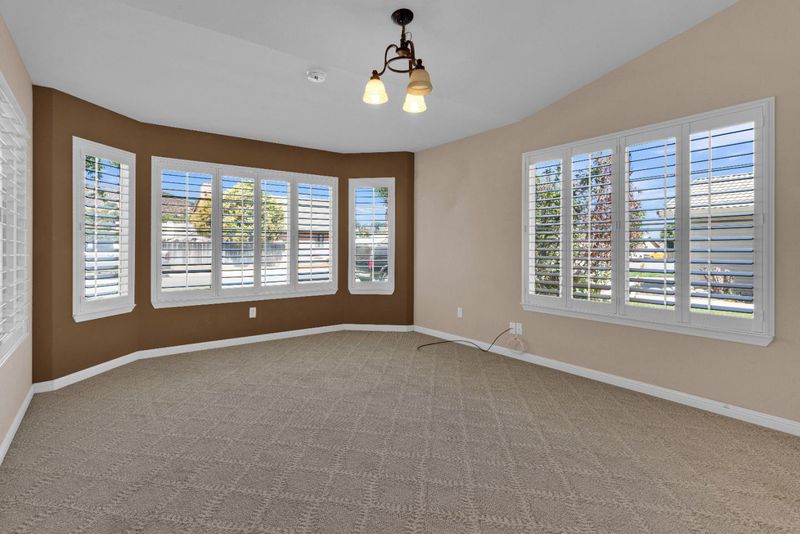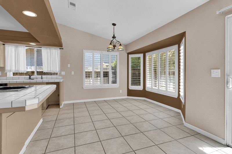 Step into comfort and style with this thoughtfully modified Monterey model, offering 3 bedrooms, 2 bathrooms, and over 1,868 sq ft of well-designed living space. Nestled on a peaceful street, this home welcomes you with an open living room, and vaulted ceilings. Plantation shutters throughout add a touch of timeless charm. The spacious kitchen is perfect for entertaining, featuring an electric cook-top, built-in oven, breakfast bar, tile countertops, and a cozy breakfast nook with a bay window that fills the space with natural light. A separate dining area offers additional space for hosting friends and family. Retreat to the oversized primary suite complete with a private en-suite bath, dual vanity, and a large tiled walk-in shower with built-in seating perfect for comfort and convenience. Enjoy serene outdoor living with a large, fenced backyard that backs to a private open space ideal for relaxing or entertaining in peace. Don't miss this wonderful opportunity to own a beautiful home in Pine Meadow Estates!
