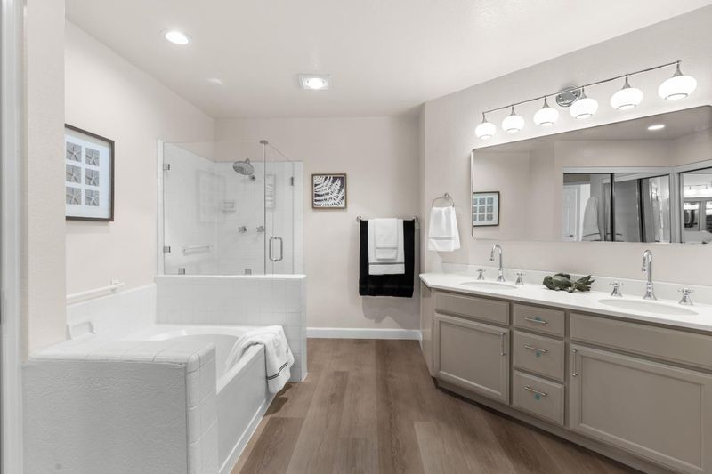 - Double Sinks, Full on Ground Floor, Shower and Tub, Shower over Tub - 1, Stall Shower, Tub