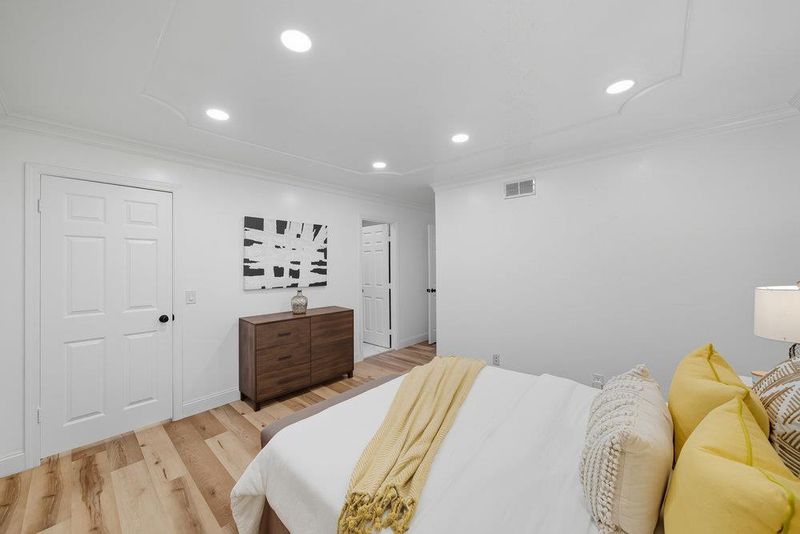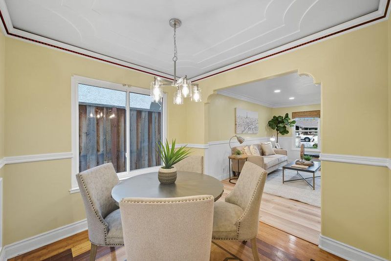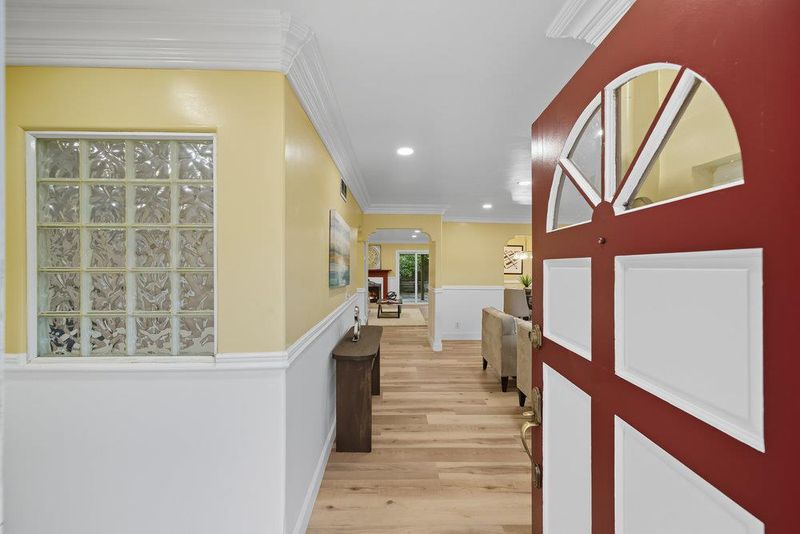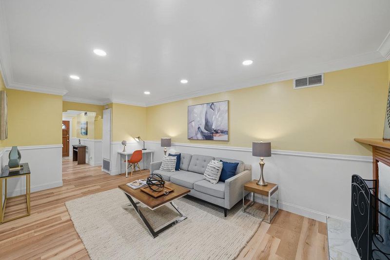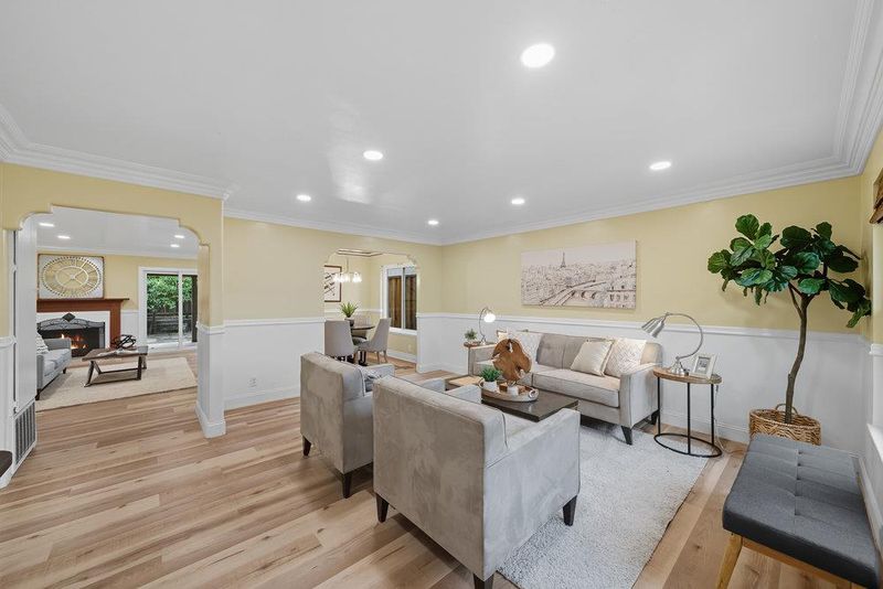 Updated and move-in ready, this single-story 4Bd/2Ba home lives larger than the square footage, with a family room and beautiful custom finishes. Tiled entry opens to the large & bright living room w/custom doorways leading to the dining and family rooms. Charming dining room has patterned hardwood flooring, ceiling panels and a new chandelier. Family room has wood burning fireplace, sliding door access to backyard and is open to the crisp white kitchen with dark granite countertops, a skylight and all new stainless-steel appliances. Large primary suite has walk-in closet with organizer, custom ceiling w/recessed lights and updated bathroom w/stall shower & skylight. Down the hall, 3 bedrooms, an updated bathroom w/soaking tub and 2 storage closets. The backyard is great for relaxing or entertaining with a newly built patio cover, sitting areas, gardening areas and mature fruit trees (Lemon, Lime, Grapefruit, Orange and Persimmon). Two-car garage with laundry area, pull-down attic access and new garage door. Fresh interior paint, new baseboards, crown molding, chair-rail trim, recessed lighting and laminate flooring throughout. Purchased/owned solar, a 3-year old roof, double-paned windows, central A/C and more! Close to parks, restaurants, Japantown and freeway access.
