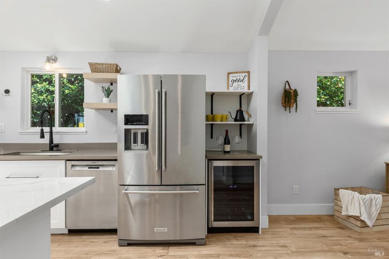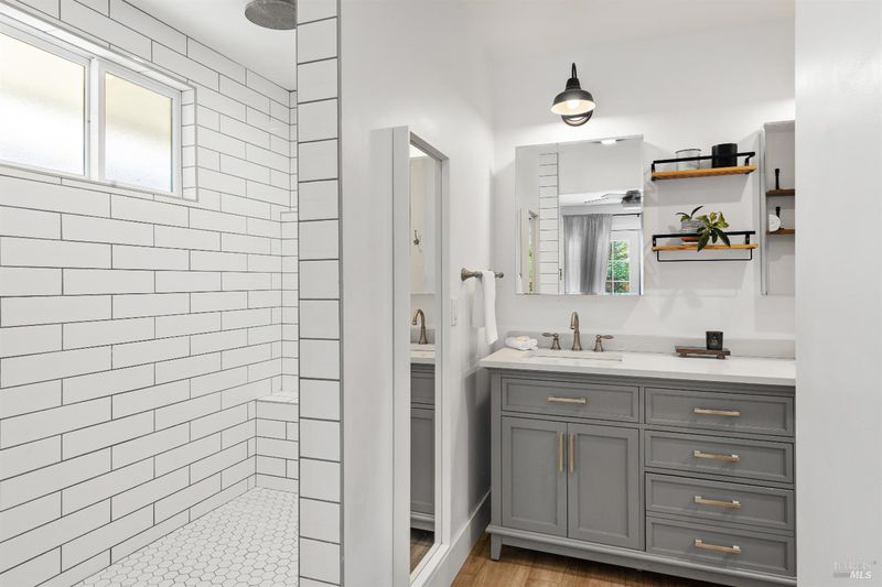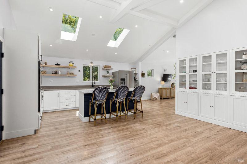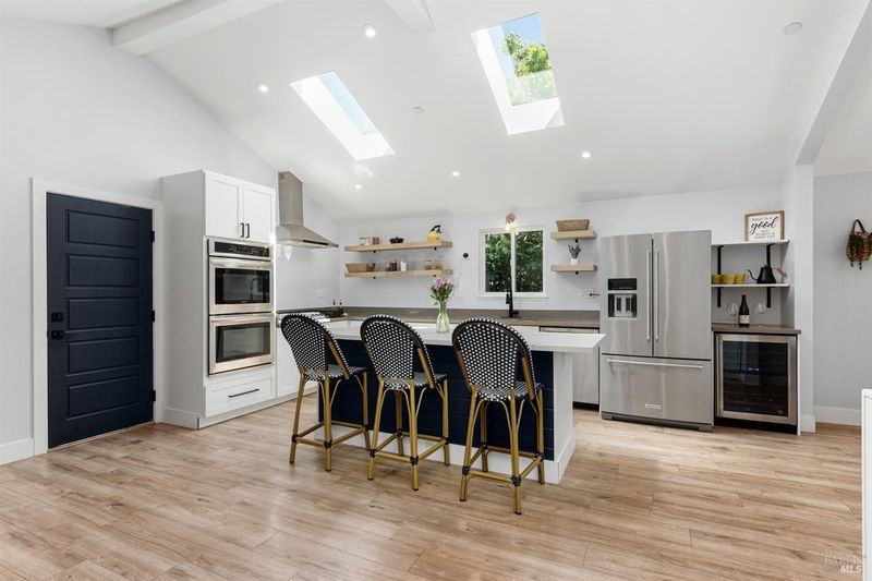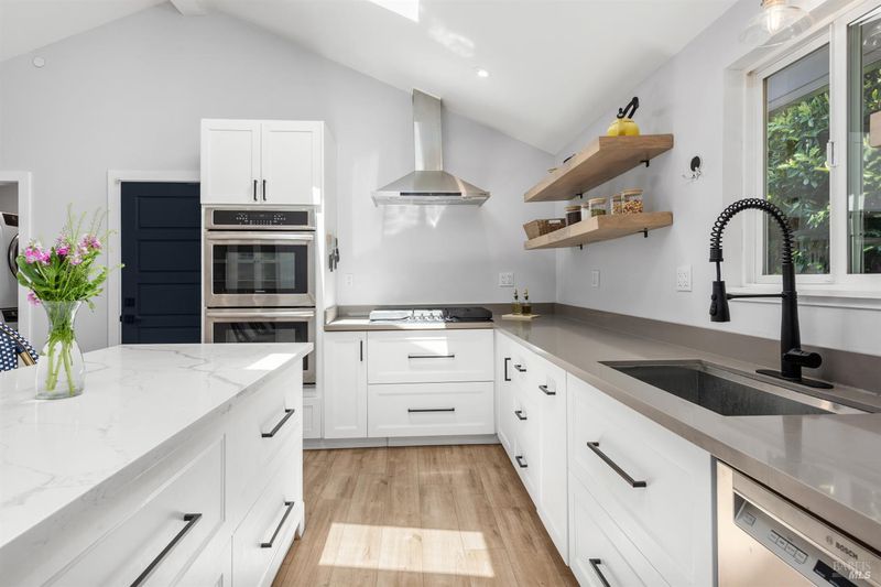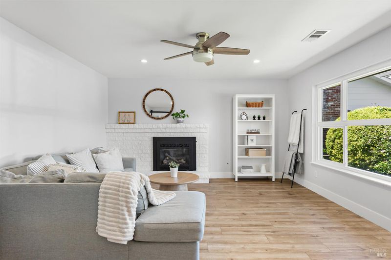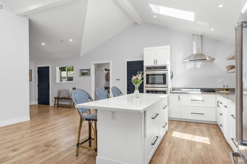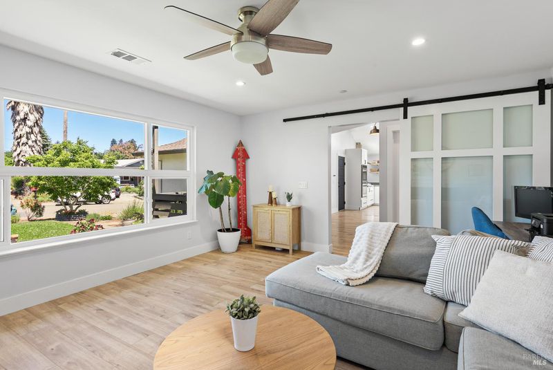 Welcome to 7925 Juanita Court, a beautifully renovated single-story home in the heart of Sebastopol. Offering 3 bedrooms, 2.5 bathrooms, and over 1,700 square feet of living space, this thoughtfully designed residence blends comfort, style, and functionality. At the heart of the home, the kitchen shines as a true centerpiece, featuring skylights, quartz countertops, a spacious island, and an open layout that flows seamlessly into the dining area with vaulted ceilings perfect for both everyday living and effortless entertaining. Additional highlights include solar panels, a modern aesthetic, and multiple living spaces that offer flexibility for a variety of lifestyles. The primary suite provides a private and relaxing retreat, complete with a spa-inspired bathroom featuring a gorgeous walk in shower, an expansive walk in closet, and direct access to the backyard. Step outside to enjoy new fencing and beautiful mature trees, creating an inviting setting for evening dinners and gatherings with friends and family. A versatile storage shed adds extra convenience, perfect for gardening or additional storage. Centrally located near schools, shopping, parks downtown Sebastopol, and the Barlow, this home delivers the perfect balance of convenience and livability.