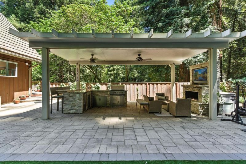 Very cool A-frame style home located in the Chemeketa Park community just minutes from Downtown Los Gatos. Set on a private lot this 3-bedroom home offers a peaceful retreat close to town and great schools like Lexington Elementary and Los Gatos High. Inside you are greeted with soaring vaulted ceilings and large windows that bring in natural light and views of the trees. The open concept living and kitchen areas feature a wood-burning fireplace, quartz countertops, freshly painted cabinets, and stainless appliances. There are two bedrooms and a full bath on the main level, with a third bedroom and second bath upstairs. The backyard is Amazing and has a covered outdoor kitchen with BBQ, granite counters, dining bar, mini fridge and a built-in gas fireplace for year-round use. There is also room to play on the low-maintenance turf lawn area. Plenty of parking in the driveway for multiple vehicles. Chemeketa Park is a friendly neighborhood with a community clubhouse, playground, and garden.