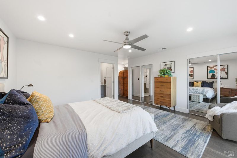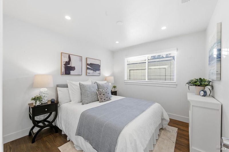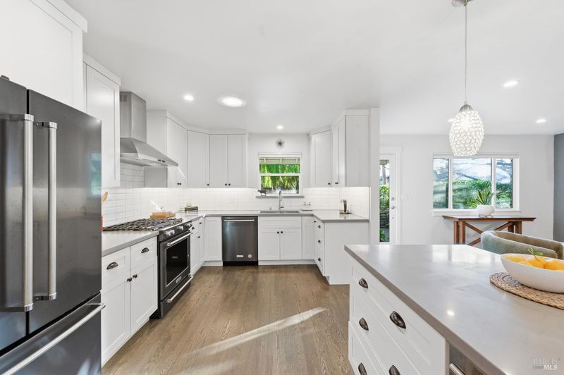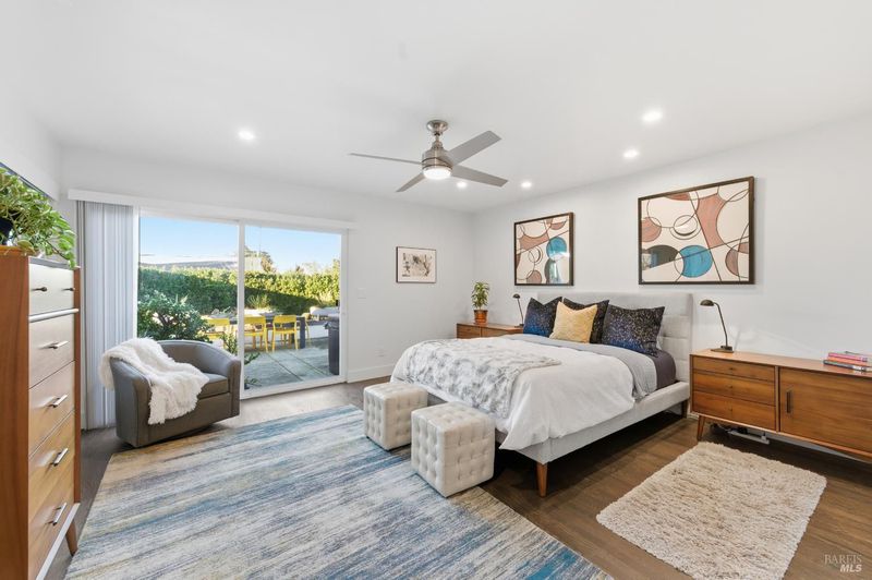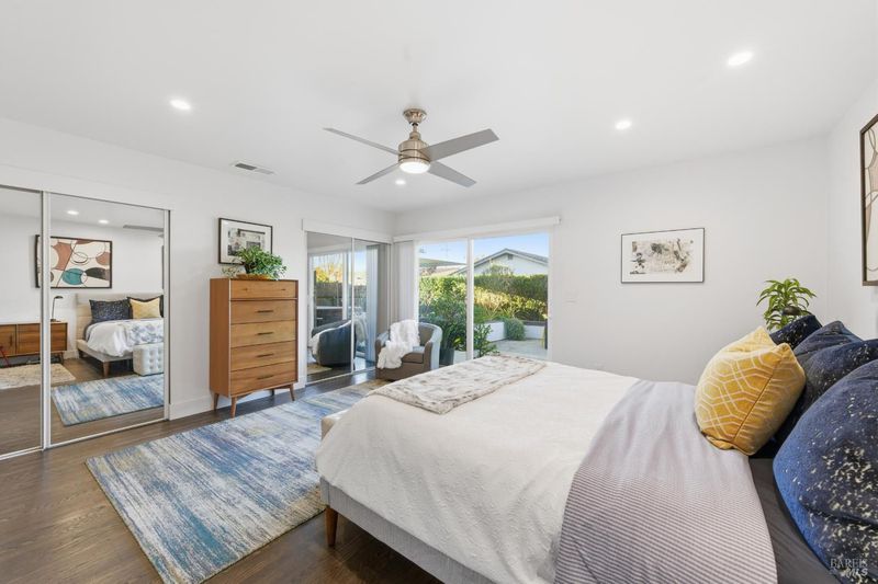 Circa 1961 mid-century ranch style single level home nestled in desirable North Napa and offering a wonderful blend of comfort, style, space, and convenience. This customized home sits in a prime location within the Bel Air Neighborhood and is only two blocks to the very popular Bel Air Shopping Plaza. Step inside to discover a nicely appointed interior characterized by its beautifully refinished hardwood floors, updated bathrooms (one with steam shower), recessed lighting, striking fireplace, formal dining room, and multiple glass French doors that all lead to lovely gardens. The backyard oasis offers the perfect sanctuary for outdoor living and entertaining, complete with a louvered pergola just in time for those warm Napa summers!