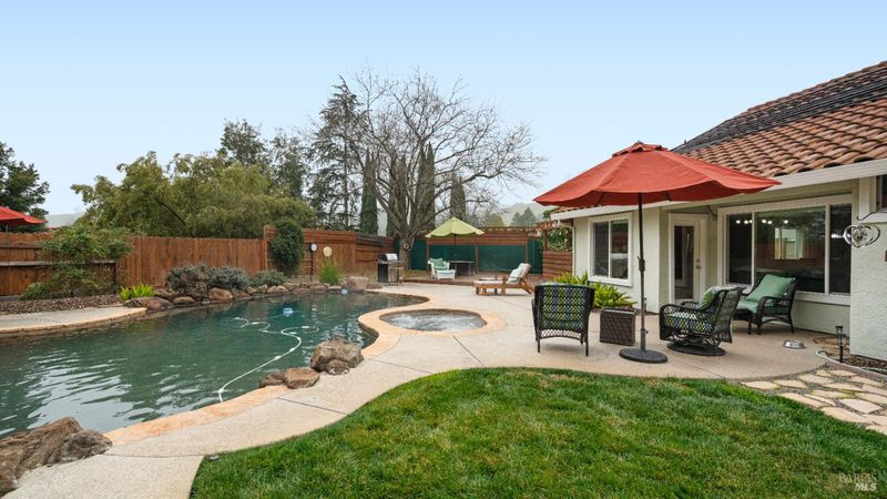 Welcome to 419 Trillick Court, a desirable single-story home tucked away on a quiet court in Vacaville. This 3-bedroom, 2-bath residence sits on an expansive .35-acre lot and offers a rare backyard retreat featuring a heated pool with solar and spa. The oversized lot provides possible RV parking and presents an excellent potential for an ADU (buyer to verify). All appliances to convey with the property. This home is perfect for entertaining, outdoor living or future expansion, all while enjoying the convenience of a single-level living in an well established neighborhood.