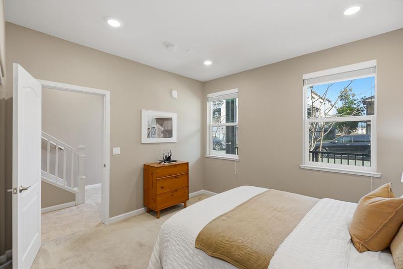 This stunning 2018-built KB Home townhouse perfectly balances modern elegance with functional design. With a desirable northeast-facing orientation, the residence is bathed in natural light through oversized windows, highlighting its airy, open-concept floor plan. At the heart of the home, the chefs kitchencomplete with sleek white cabinetry, a grand center island, quartz countertops, and premium stainless steel appliancesflows seamlessly onto a private balcony, ideal for morning coffee or evening relaxation. The luxurious primary suite features an expansive walk-in closet and a dual-sink vanity. For added versatility, the secluded ground-level bedroom suite is perfect for guests, a home office, or multigenerational living. Additional premium upgrades include a 3-zone HVAC system for personalized comfort, a true side-by-side two-car garage, and low HOA dues for added value and peace of mind. Unbeatable location: minutes from major tech campuses, BART, Great Mall, and major freeways. With access to top-rated Milpitas schools, this home offers a rare blend of style, convenience, and community.