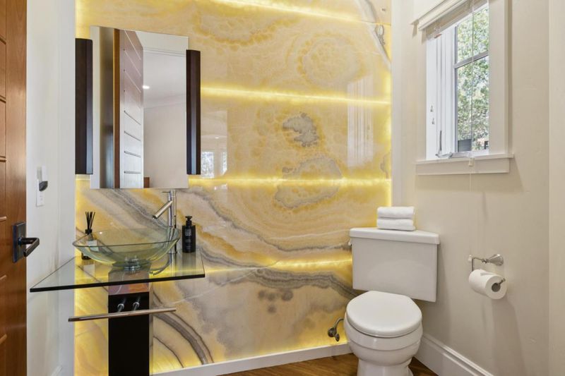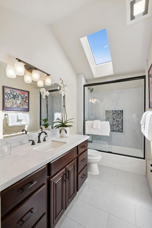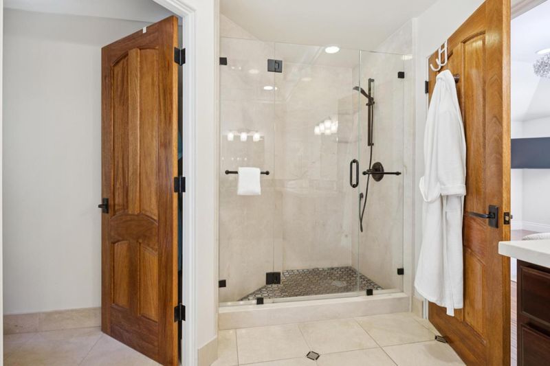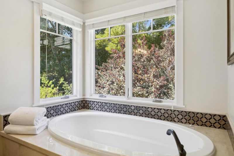 - Shower over Tub - 1, Double Sinks, Marble, Tub, Updated Bath, Half on Ground Floor, Primary - Oversized Tub, Primary - Stall Shower(s)