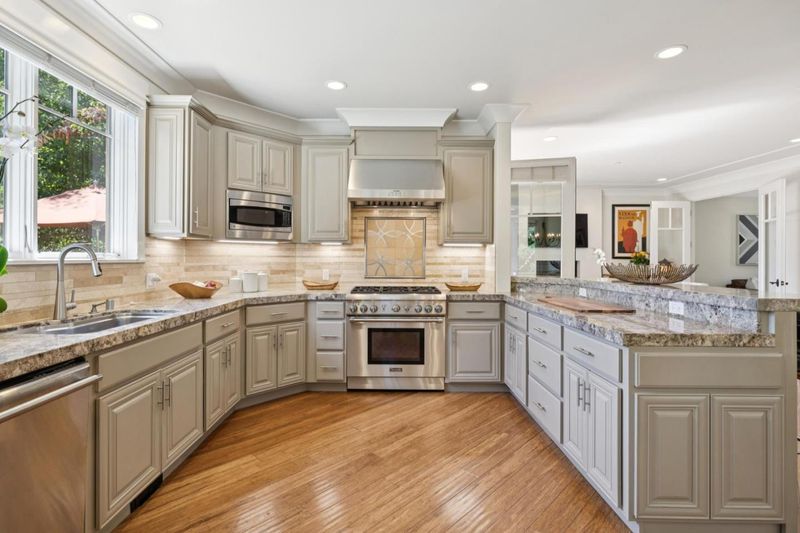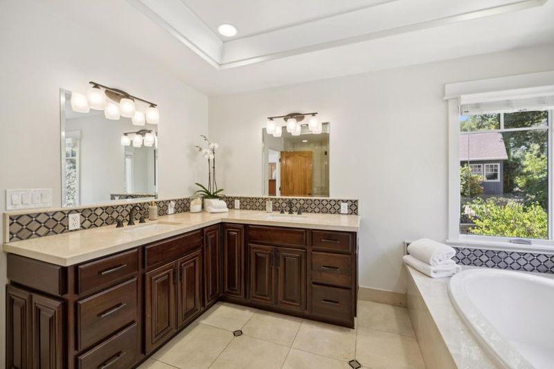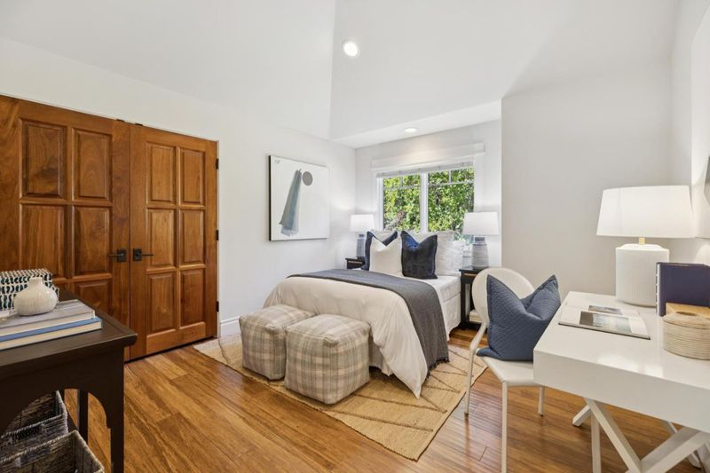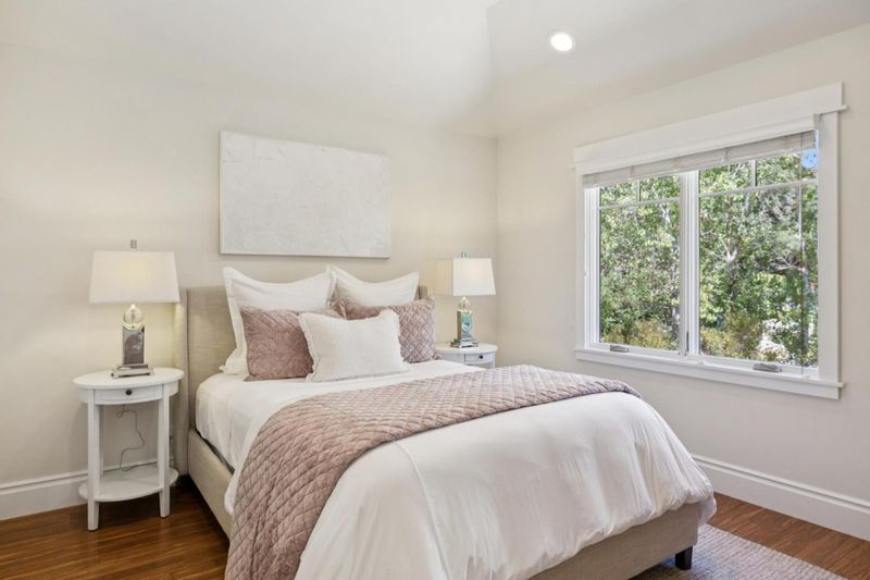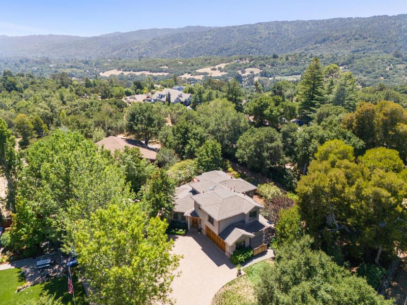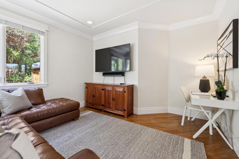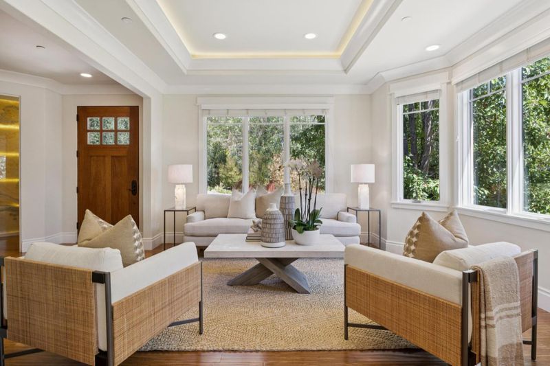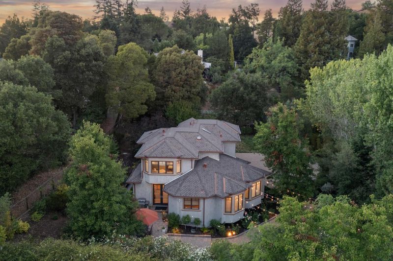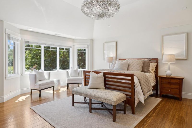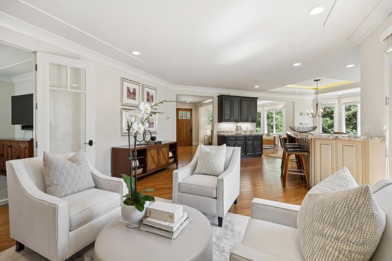 Refined Country Luxury on a Gated Level Lot Set beyond a gate on a spacious level lot, this newer home offers luxurious quality with an open and bright floor plan. Bamboo floors with a hewn finish, coved crown moldings, solid wood doors, and up-lit tray ceilings exemplify the quality details found throughout. The open design revolves around a spacious foyer with a formal living room, dining area, chefs kitchen with breakfast bar, and family room. There is a dedicated office, perfect for todays work-from-home needs, plus 3 upstairs bedrooms, including the primary suite with Western hill views and marble bath. Outside, the newly landscaped grounds unfold as a private retreat with mature trees and an expansive lawn, all with newly added lighting for evening enjoyment. A vibrant rose garden adds color, a welcoming patio invites effortless al fresco dining and entertaining, plus there is a raised bed succulent garden. Adding to the appeal is the homes close-in convenience just over 2 miles from the Woodside Village and with access to acclaimed Woodside Elementary School.